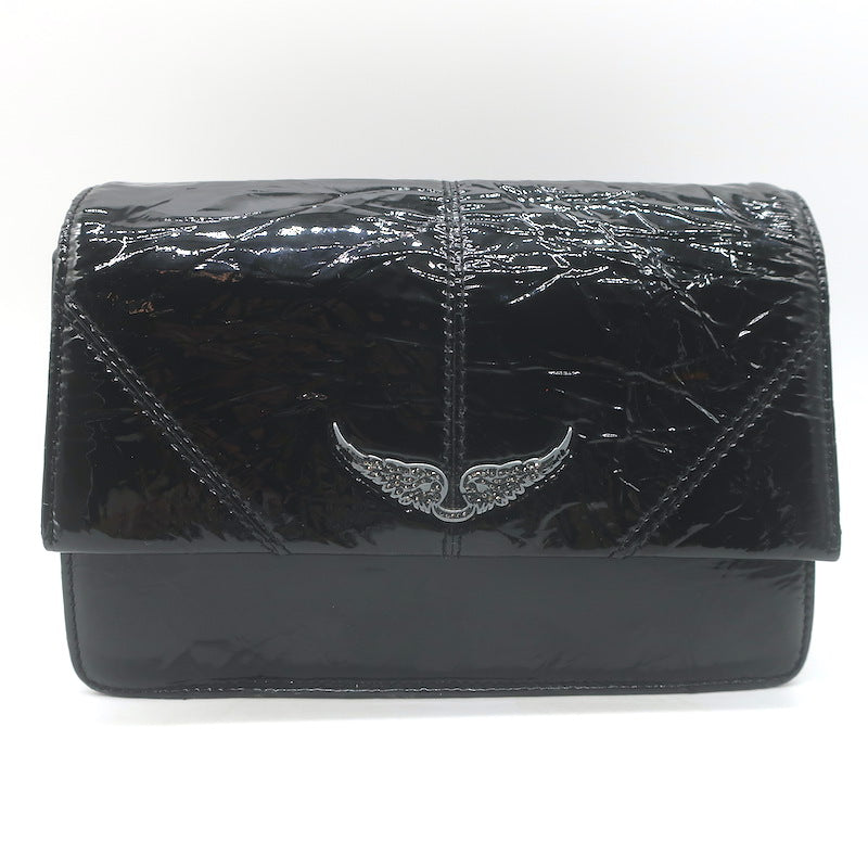 Zadig & Voltaire Lolita Wrinkle Small Crossbody Bag Black Patent Leather