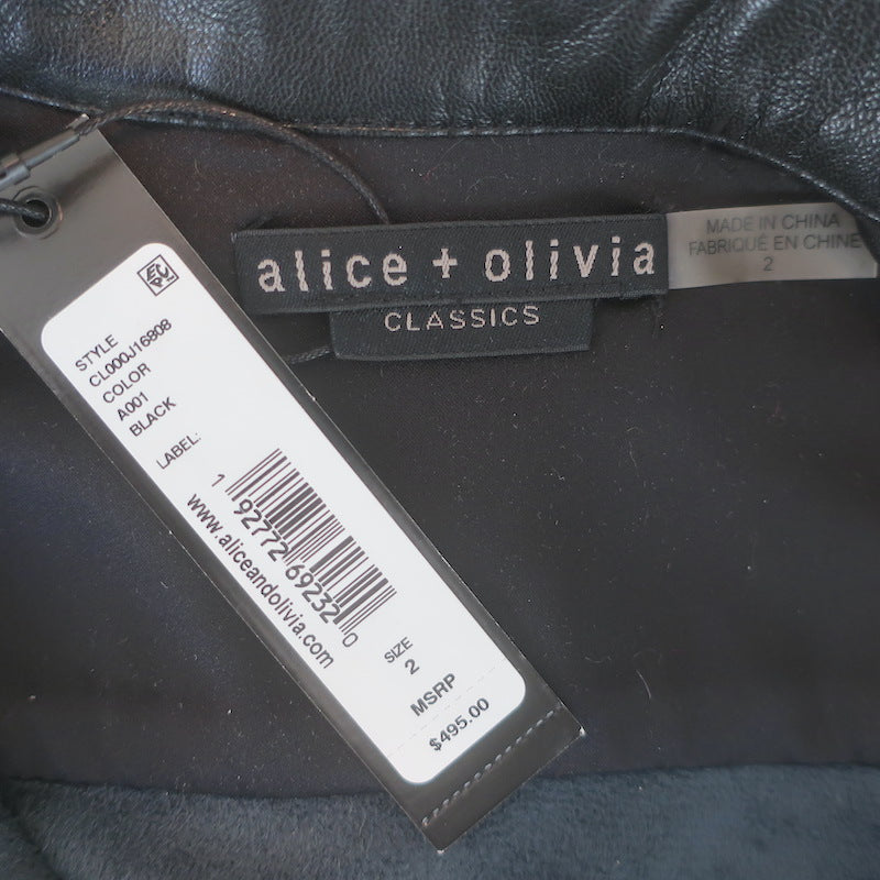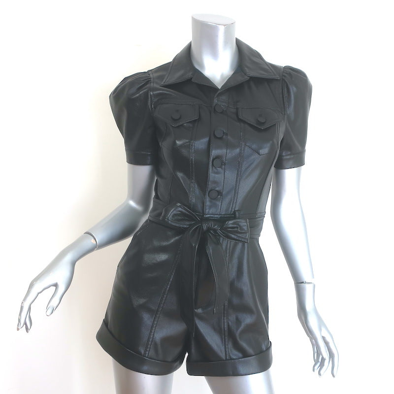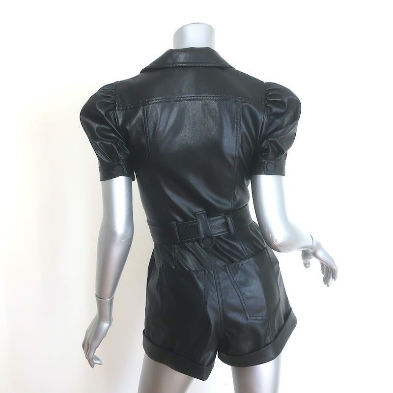 Alice + Olivia Leonie Puff Sleeve Vegan Leather Romper Black Size 2 NEW