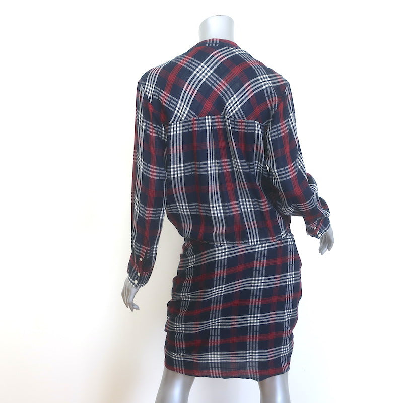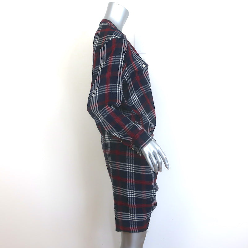 Veronica Beard Emory Ruched Mini Shirt Dress Navy Plaid Cotton-Blend Size 10 NEW