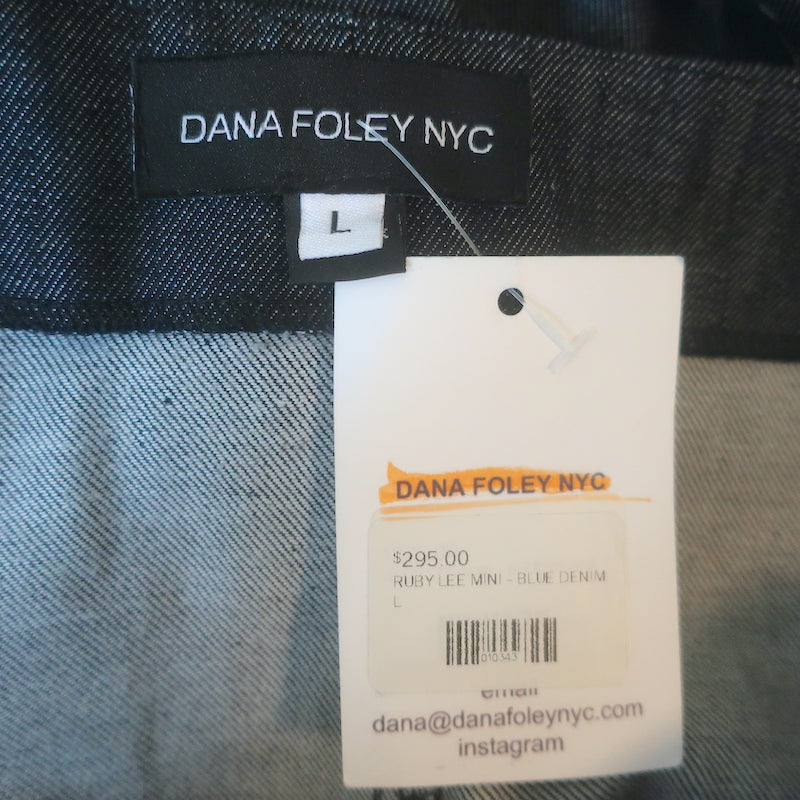 Dana Foley NYC Ruby Lee Strapless Denim Mini Dress Dark Blue Size Large NEW
