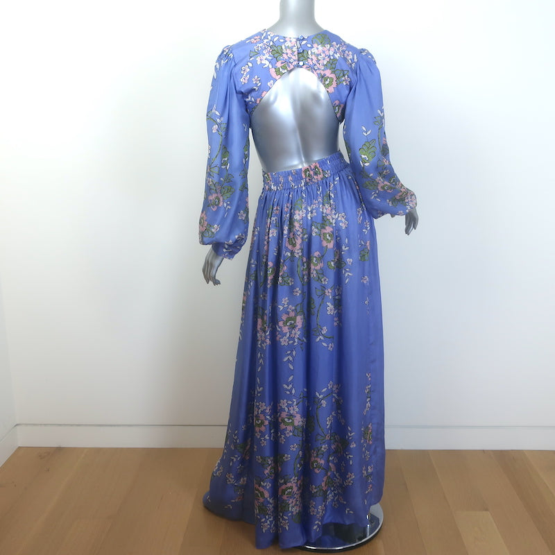 HANNAH Rio Cutout Maxi Dress Blue Floral Print Silk Size 1 NEW