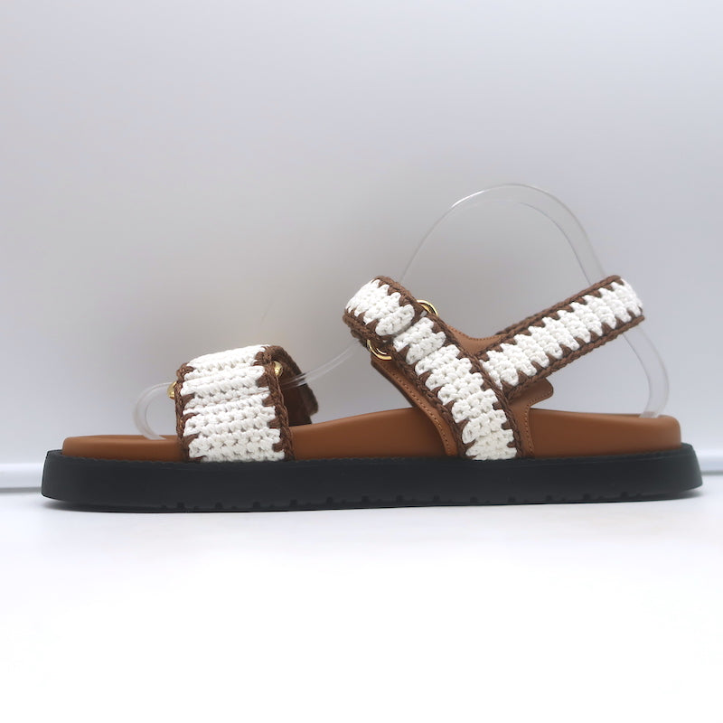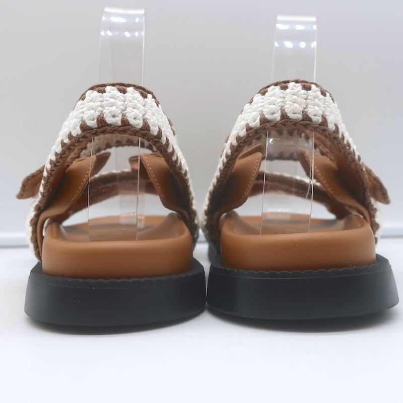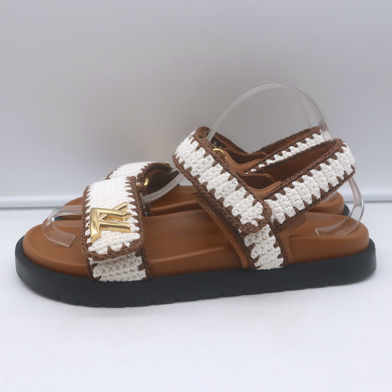 Louis Vuitton LV Sunset Crocheted Slingback Sandals Cream/Brown Size 39 NEW