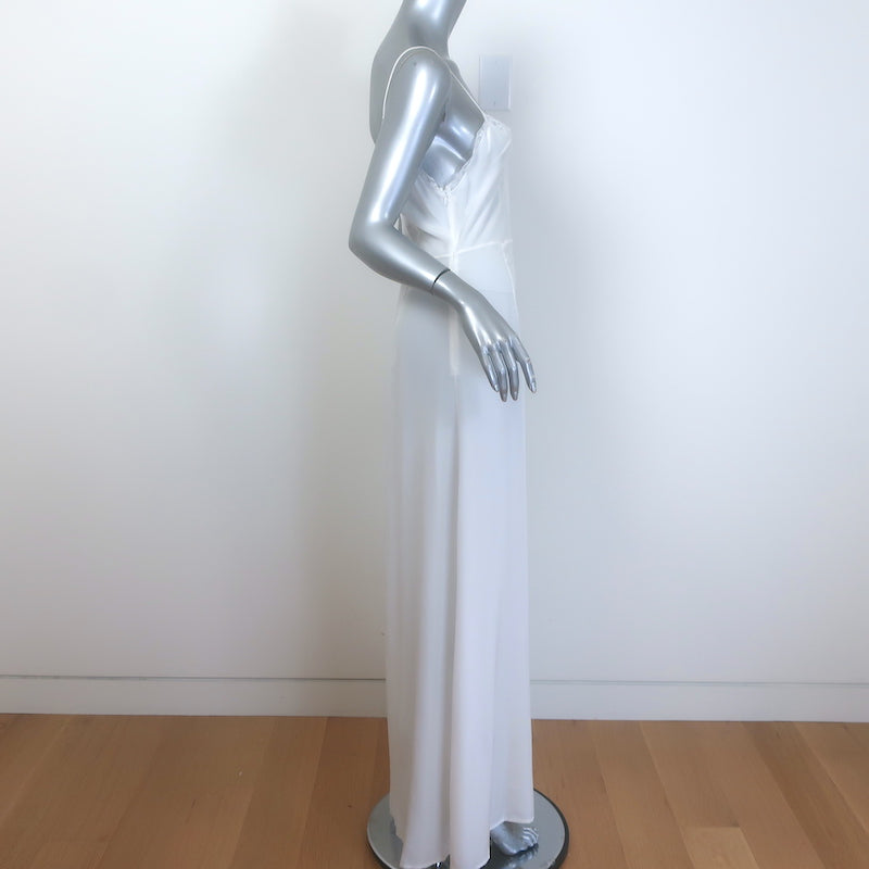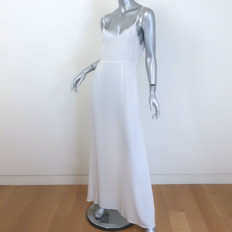 Prada Lace-Trimmed Maxi Slip Dress White Crepe de Chine Size 40 NEW