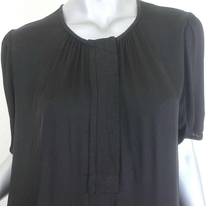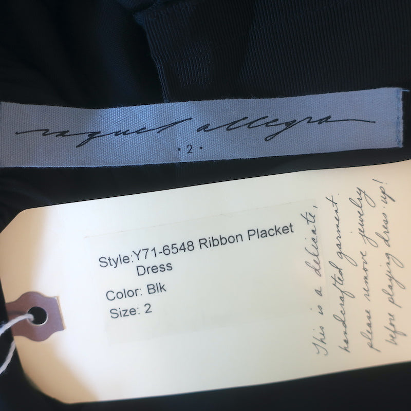 Raquel Allegra Ribbon Placket Midi Dress Black Liquid Satin Size 2 NEW