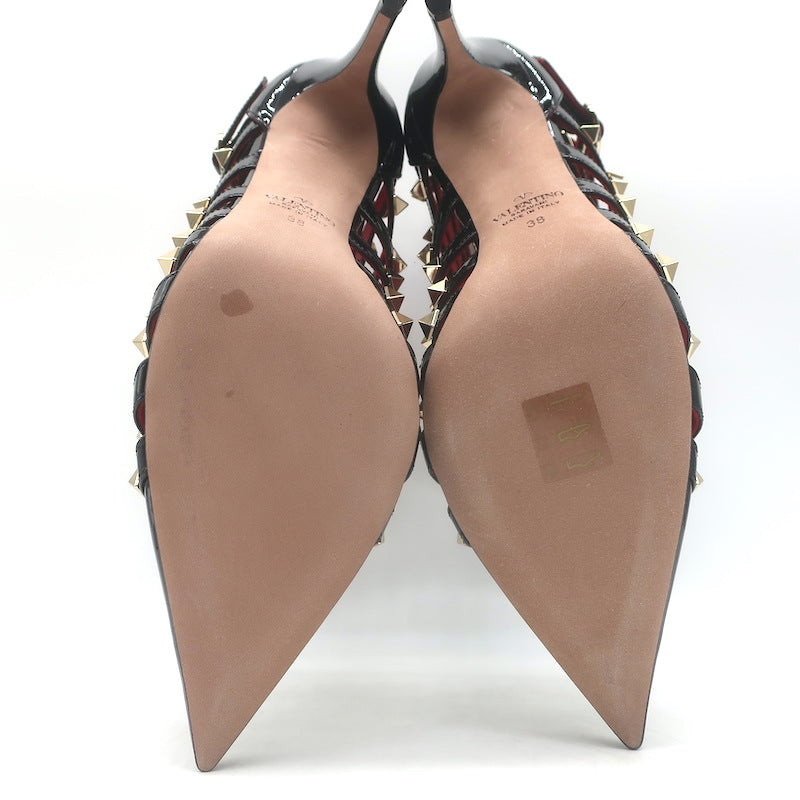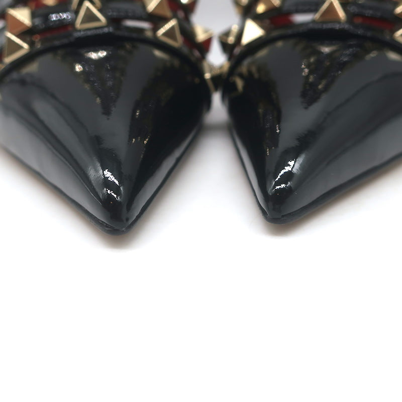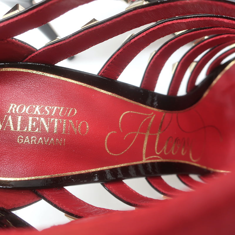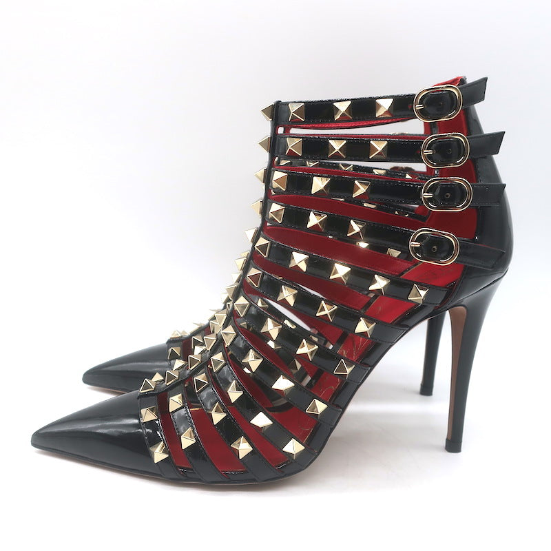 Valentino Alcove Rockstud Strappy Booties Black Patent Leather Size 38 NEW