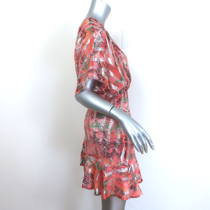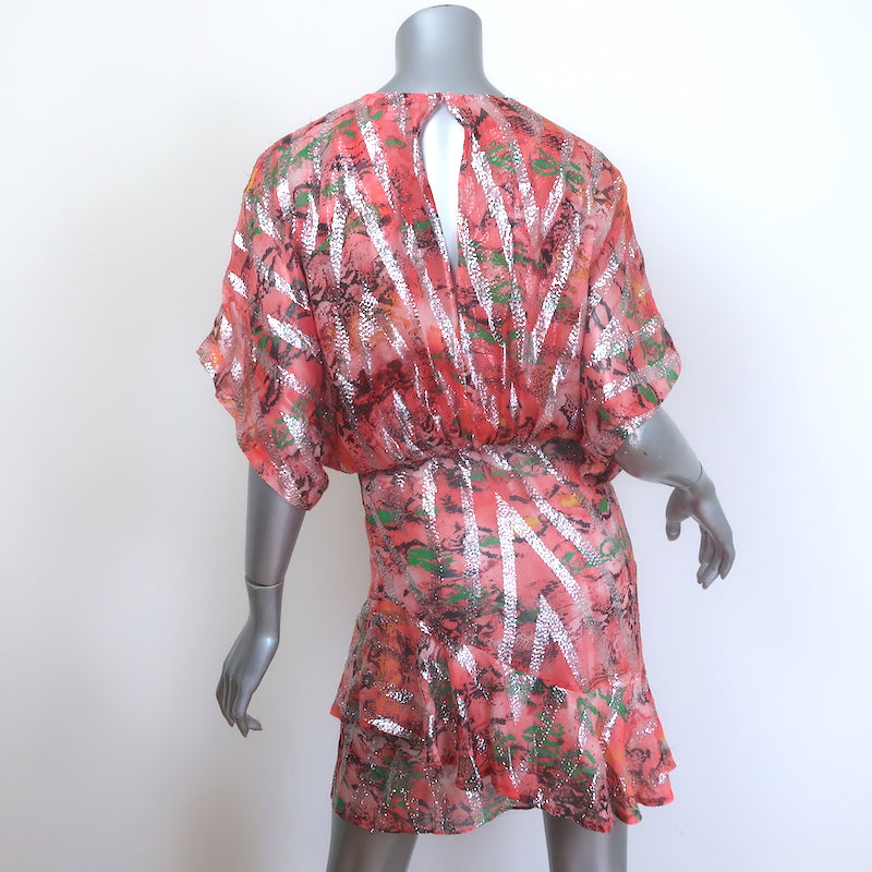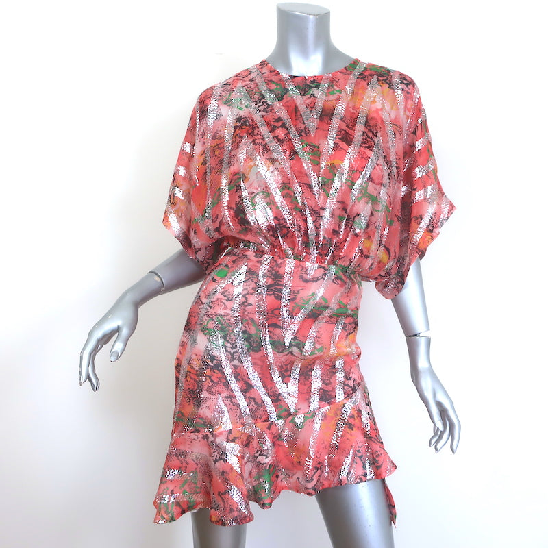 IRO Wobam Ruffled Asymmetric Mini Dress Salmon Metallic Snake Print Silk Size 34