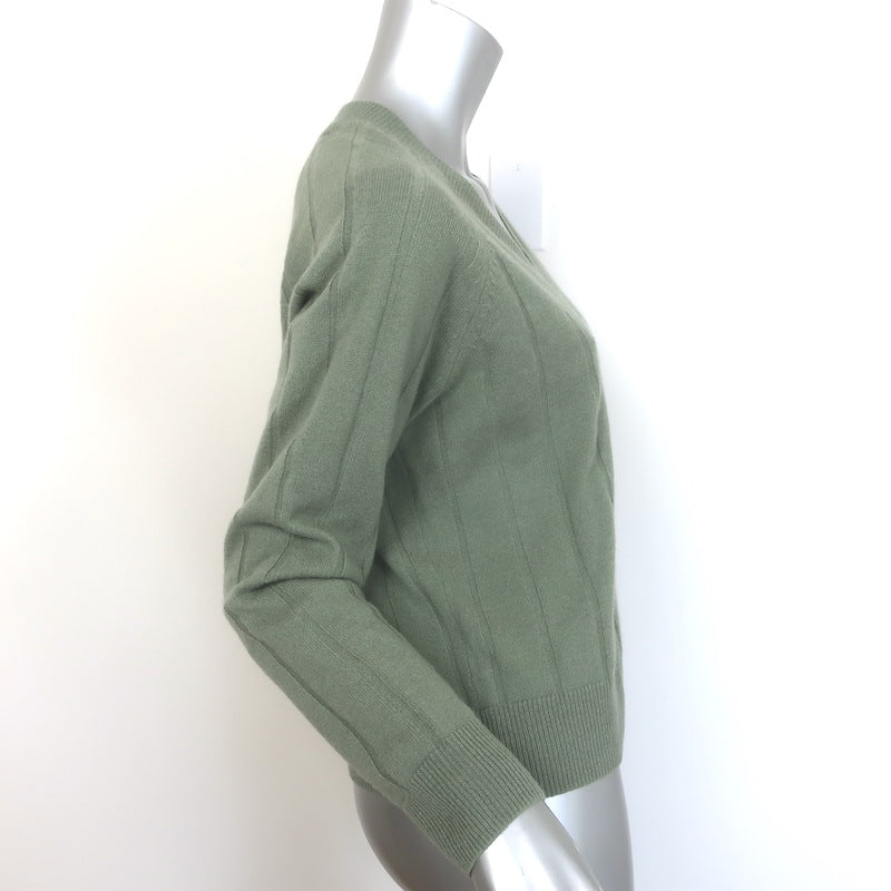 27 Miles Ribbed Cashmere V-Neck Sweater Sage Size Extra Small