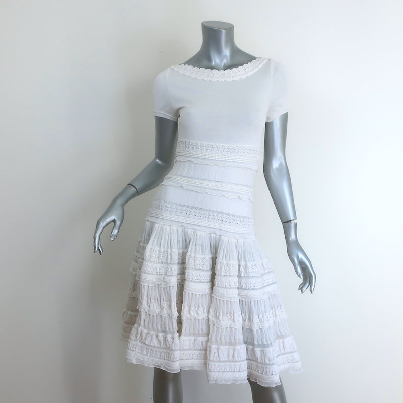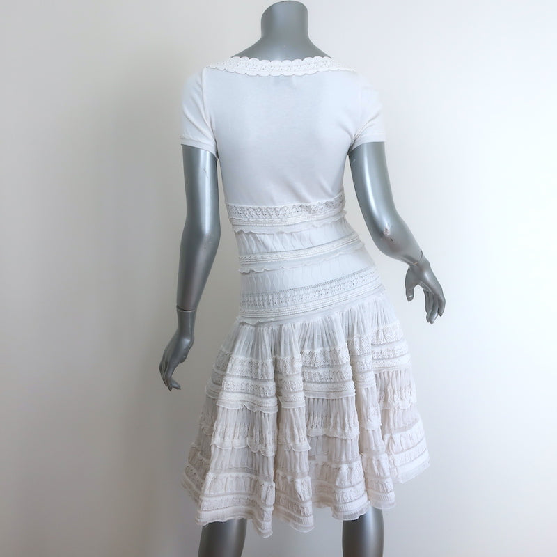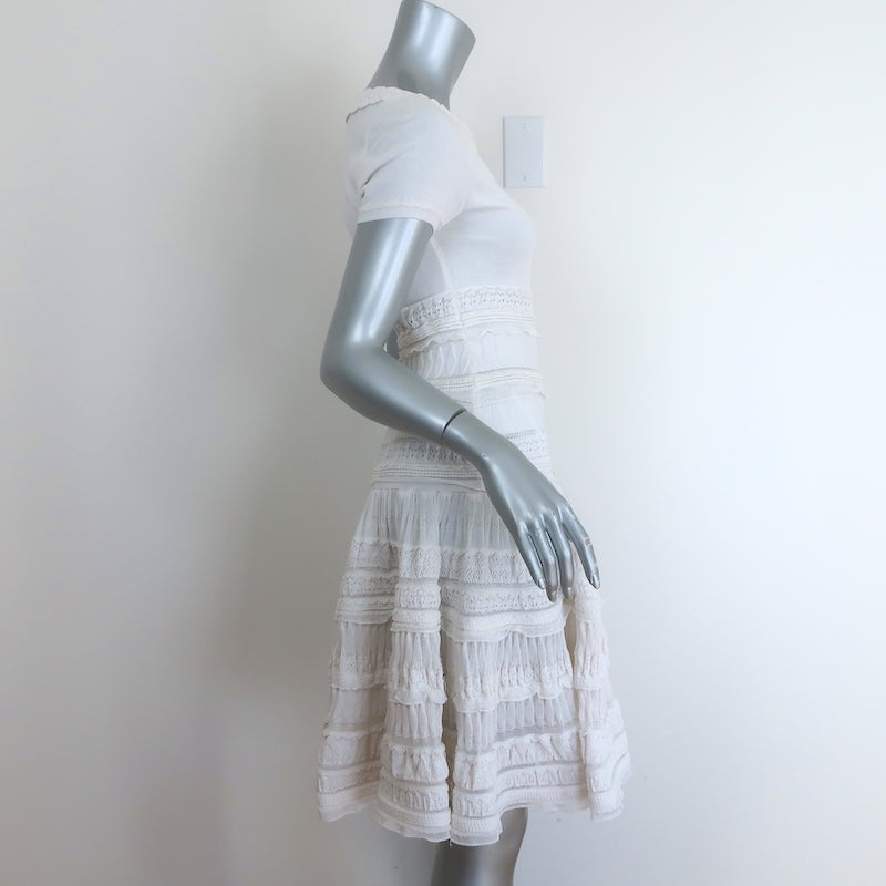 Alaia Edition 2007 Ruffled Crochet Crinoline Dress White Cotton-Blend Size 40