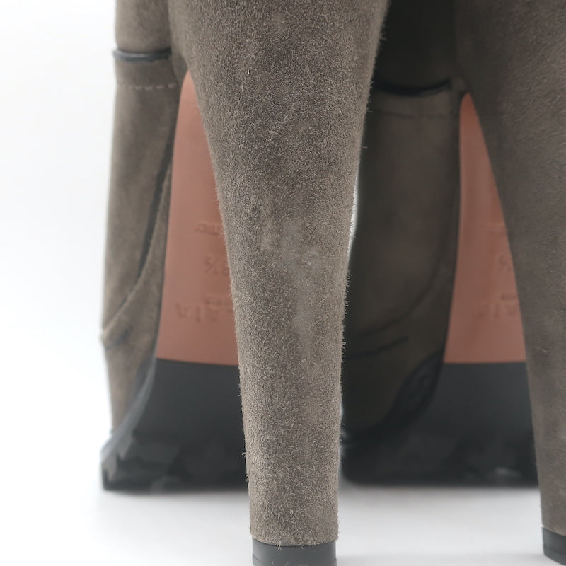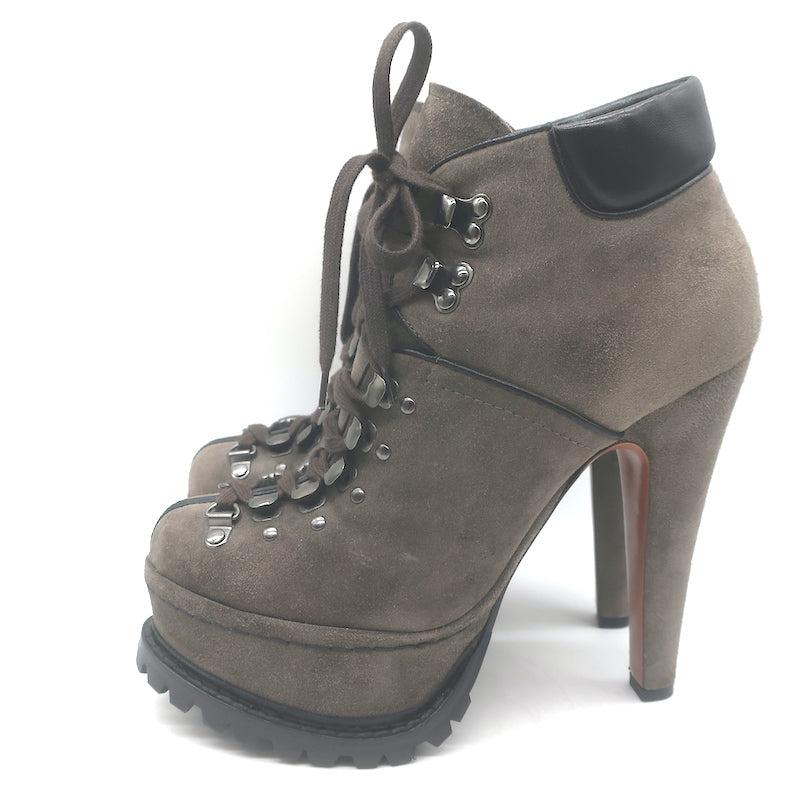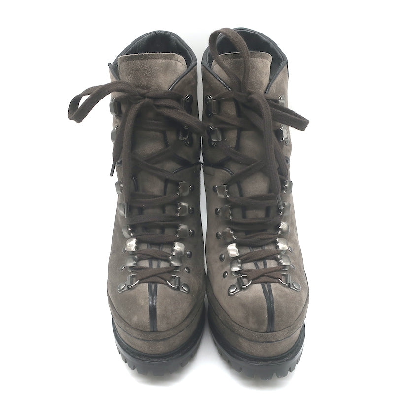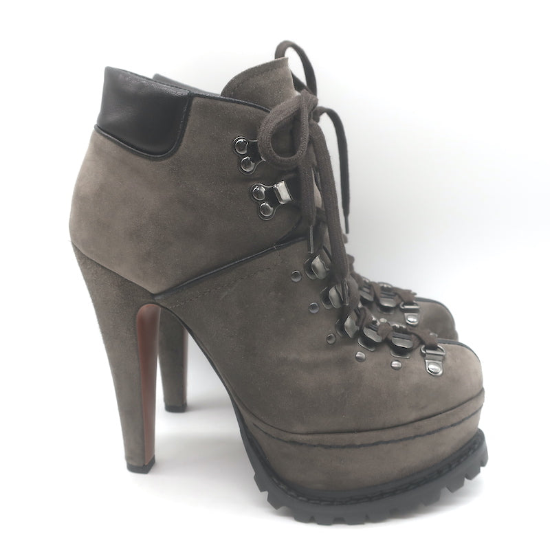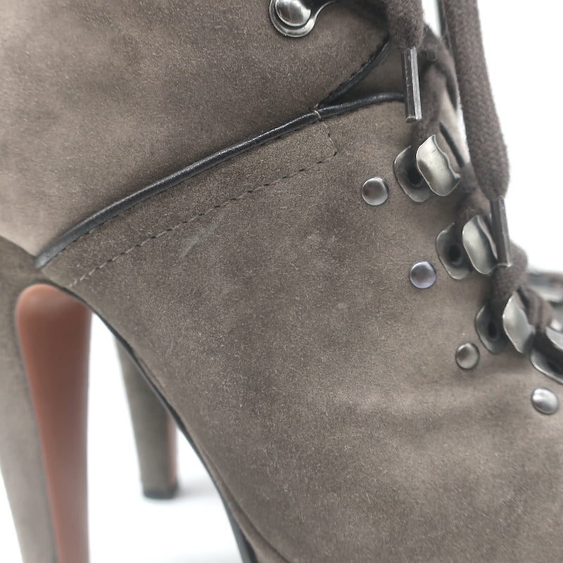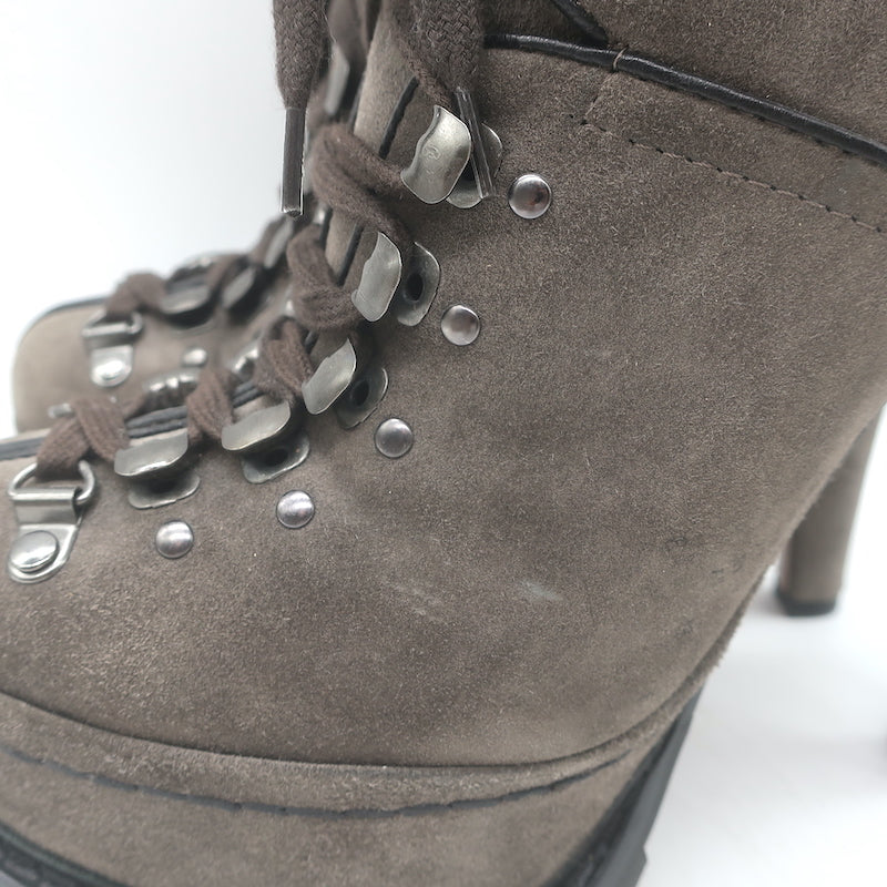 Alaia Platform Hiking Boots Dark Taupe Suede Size 38.5 Lace-Up Ankle Boots
