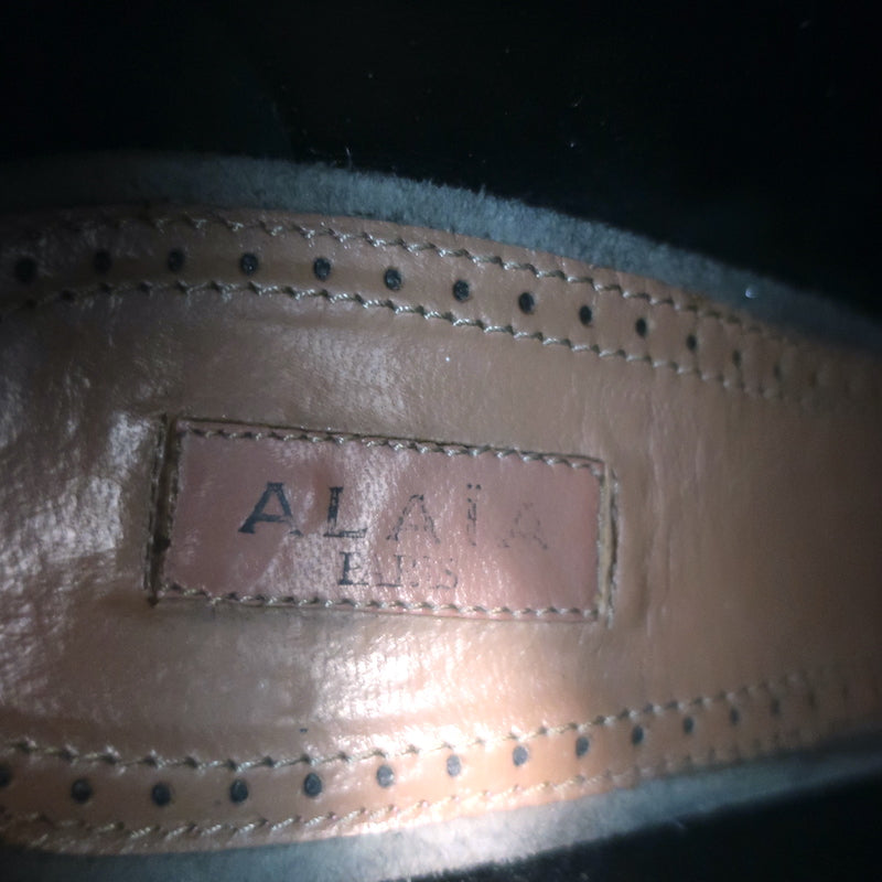 Alaia Hook & Eye-Embellished Ankle Boots Black Glossed Leather Size 40...