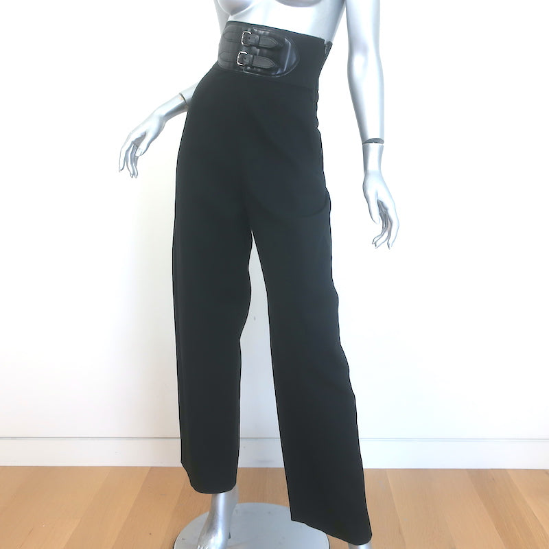 Alaia Leather-Belted Ultra High Rise Barrel Leg Pants Black Cotton Twill Size 36