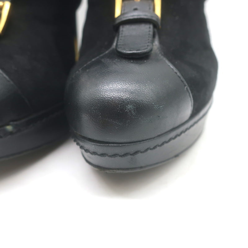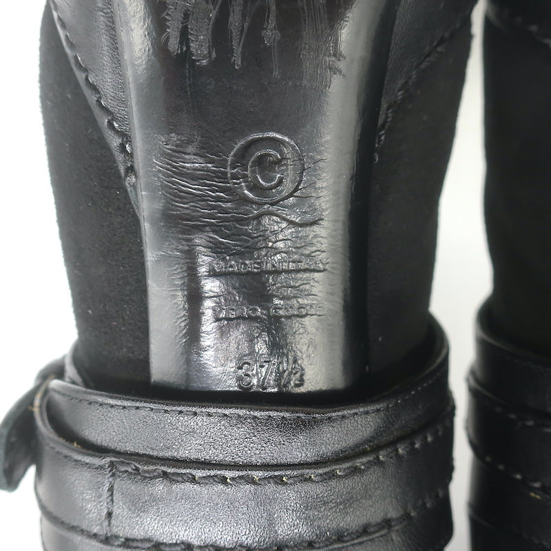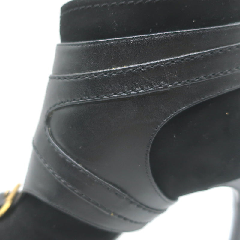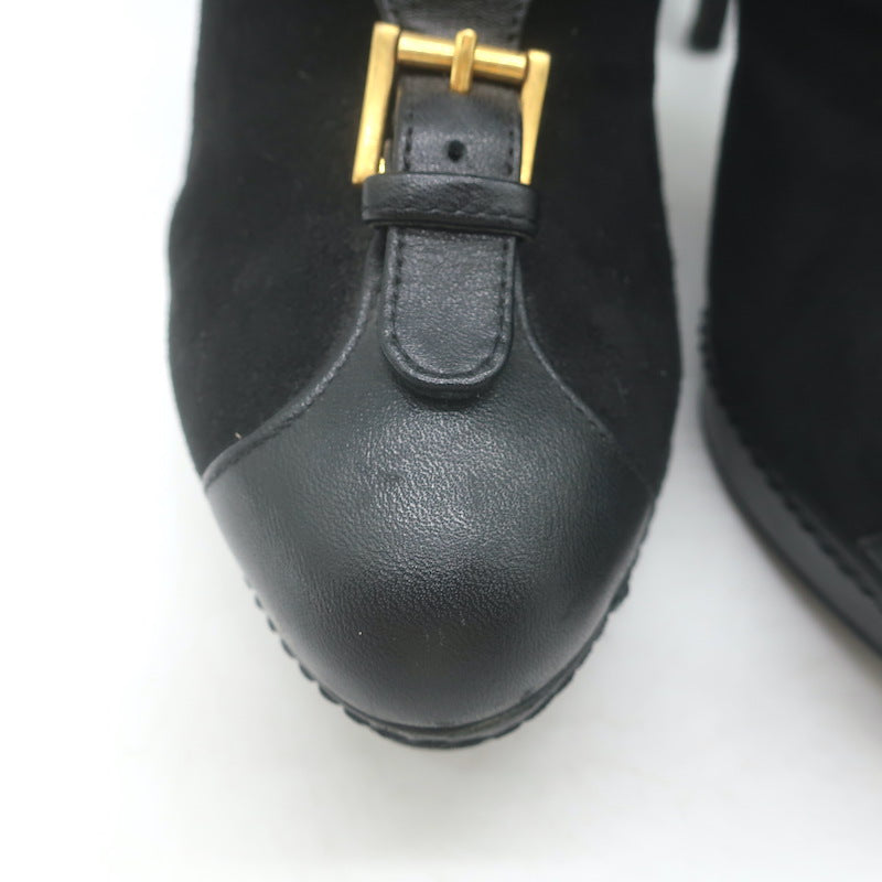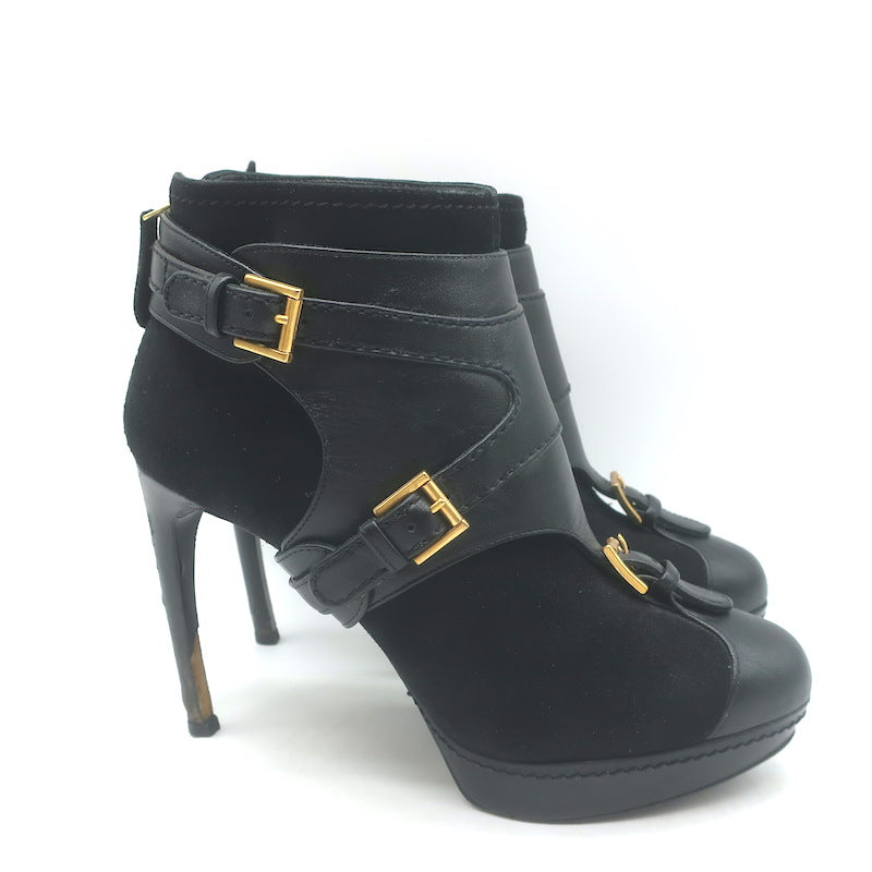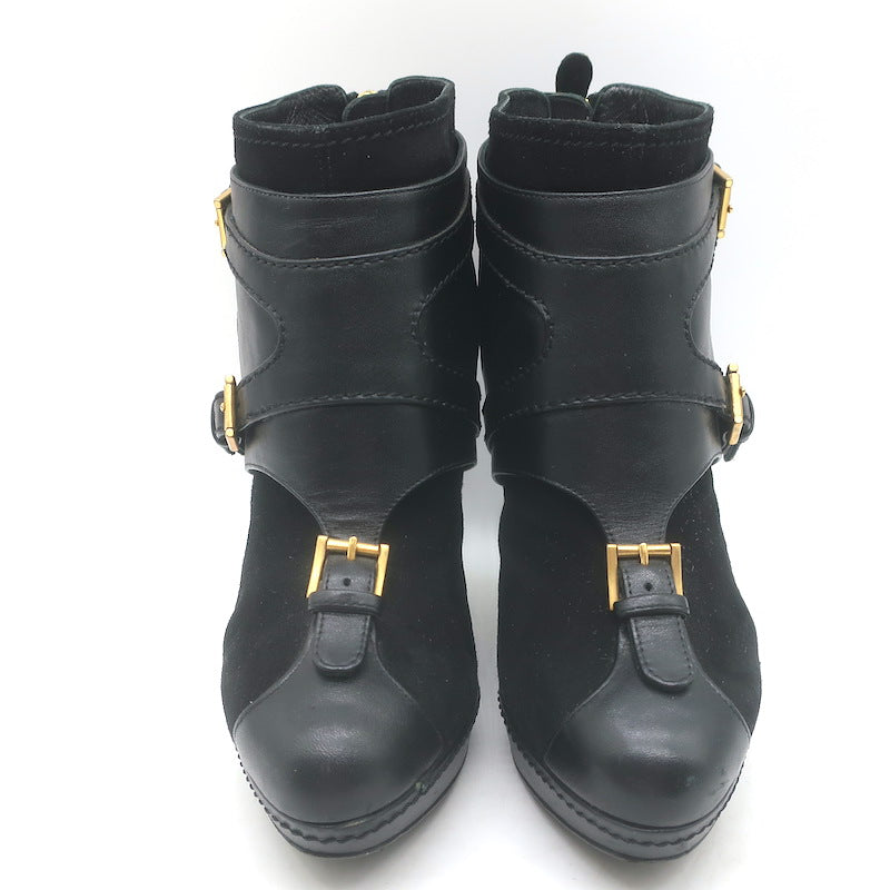 Alexander McQueen Buckled Harness Booties Black Suede & Leather Size 37.5