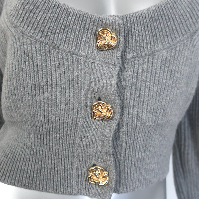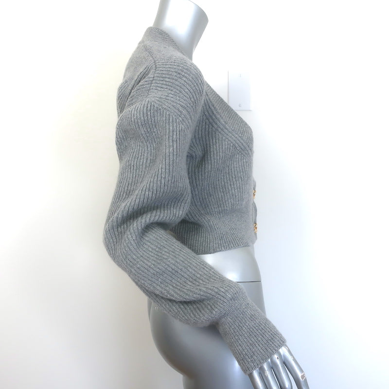 Alexander McQueen Cropped Scoop Neck Cardigan Gray Wool-Cashmere Size Medium