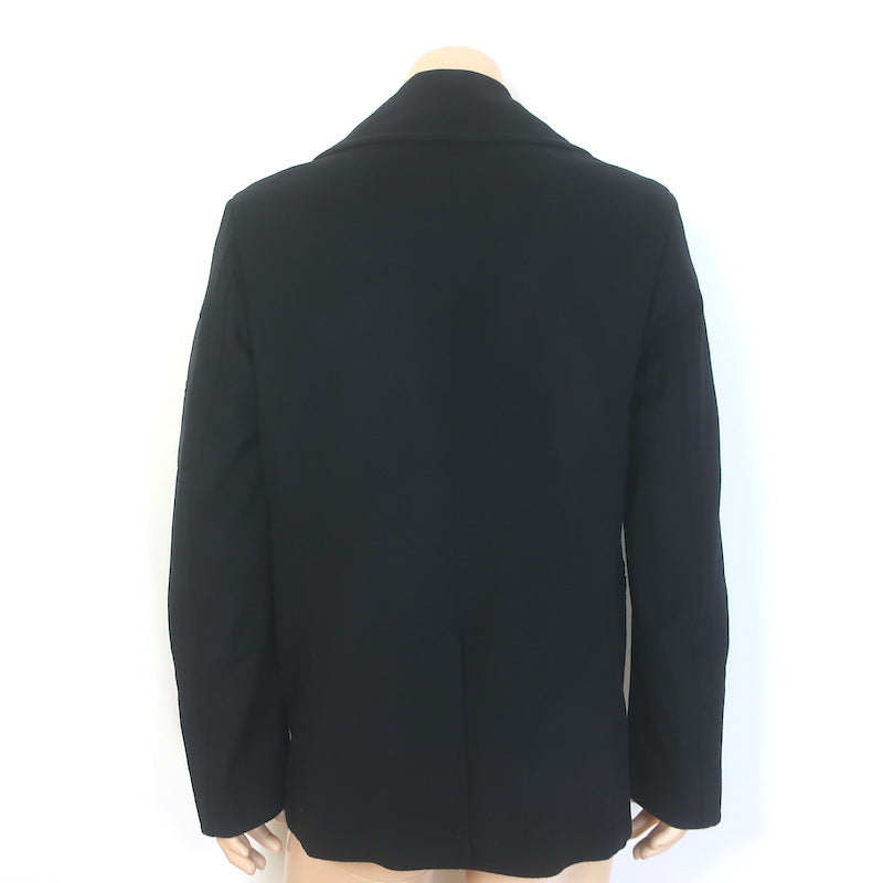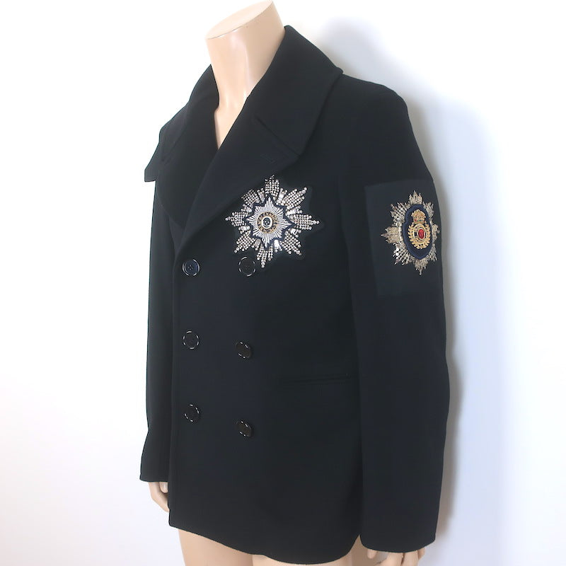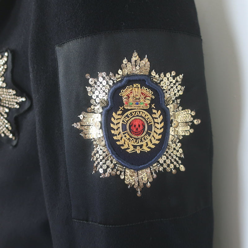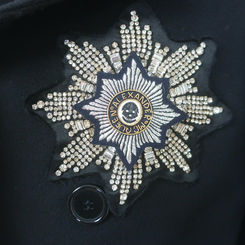 Alexander McQueen Embroidered Patch Peacoat Black Wool-Cashmere Size 50