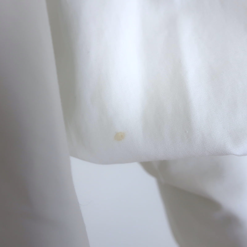 Pre-loved. Good condition. No major flaws, 2 very faint yellow spots on right bust and a small yellow spot on left sleeve...