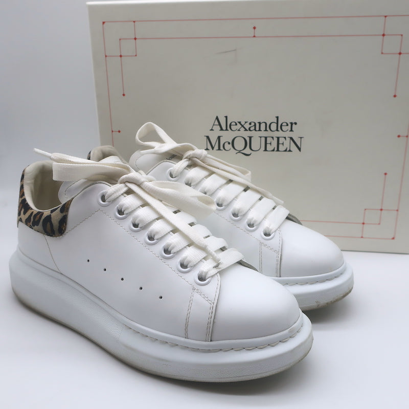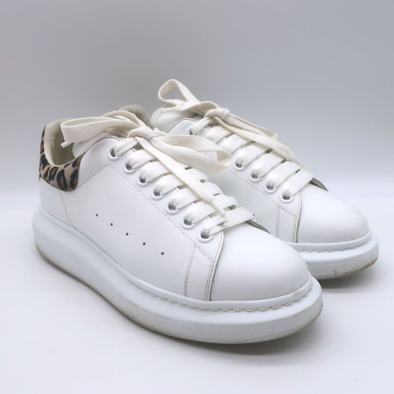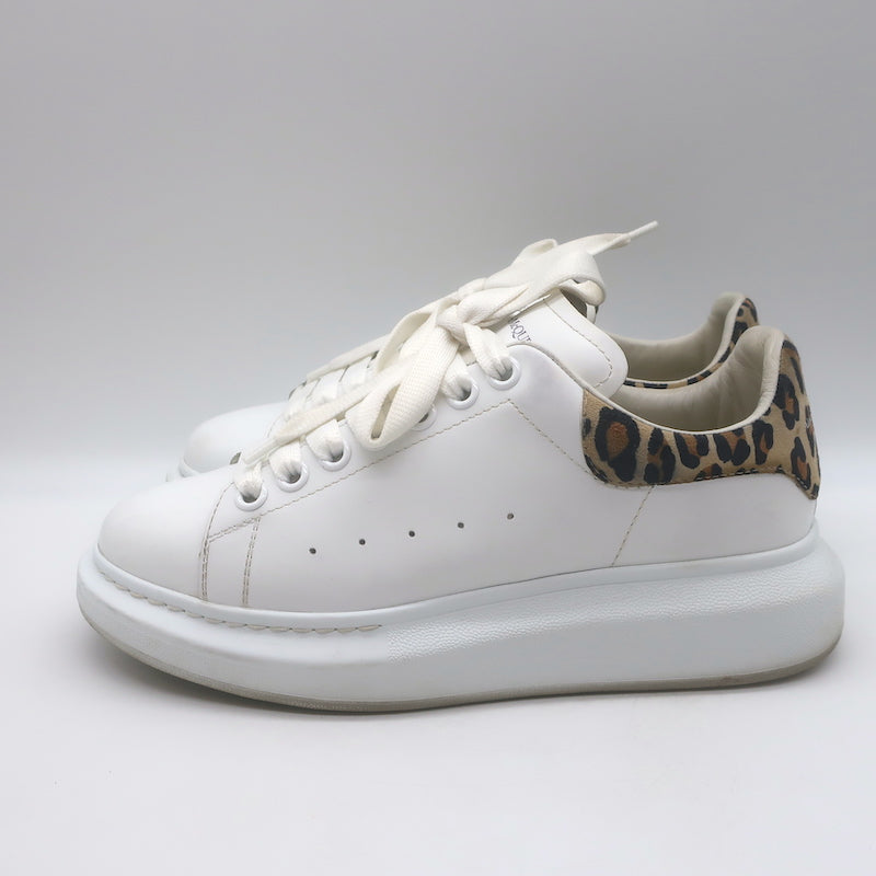Alexander McQueen Oversized Sneakers White Leather & Leopard Suede Size 38