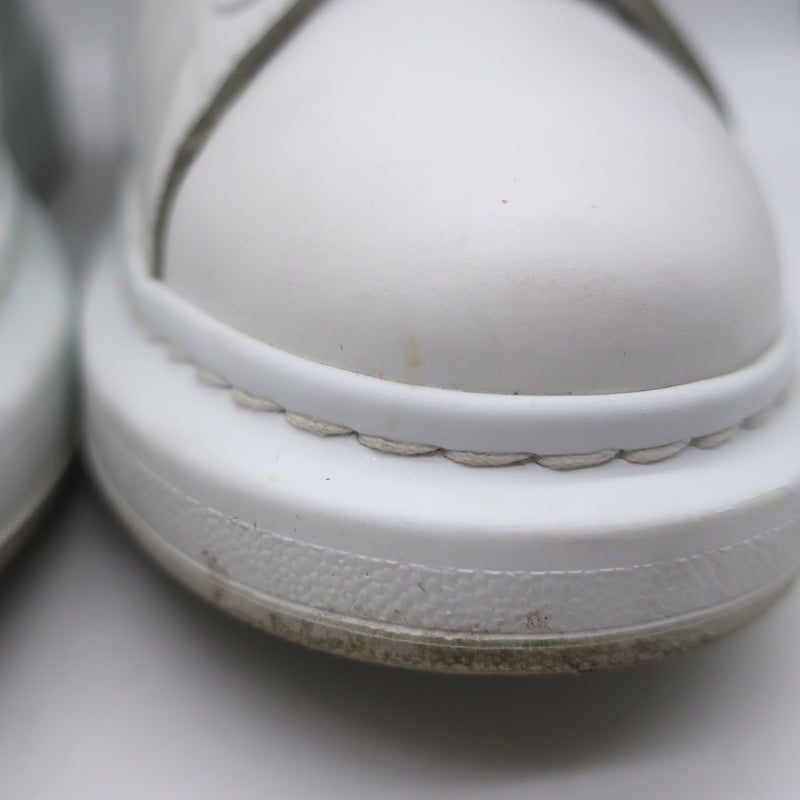 Pre-loved. Good condition. A few faint gray smudges on leather. Scuffs and smudges throughout rubber. Black mark on right lace and a small yellow mark on left toe. Leather has started to crease on interior sides of toes from walking. Some blue smudging on leopard print. Comes with box. Retails for $540!