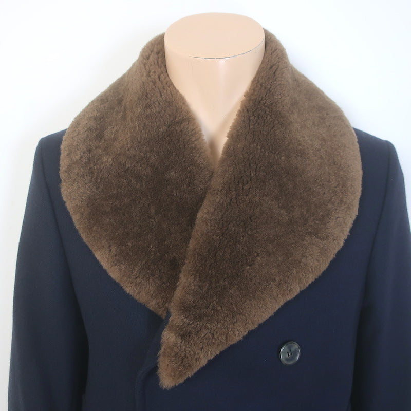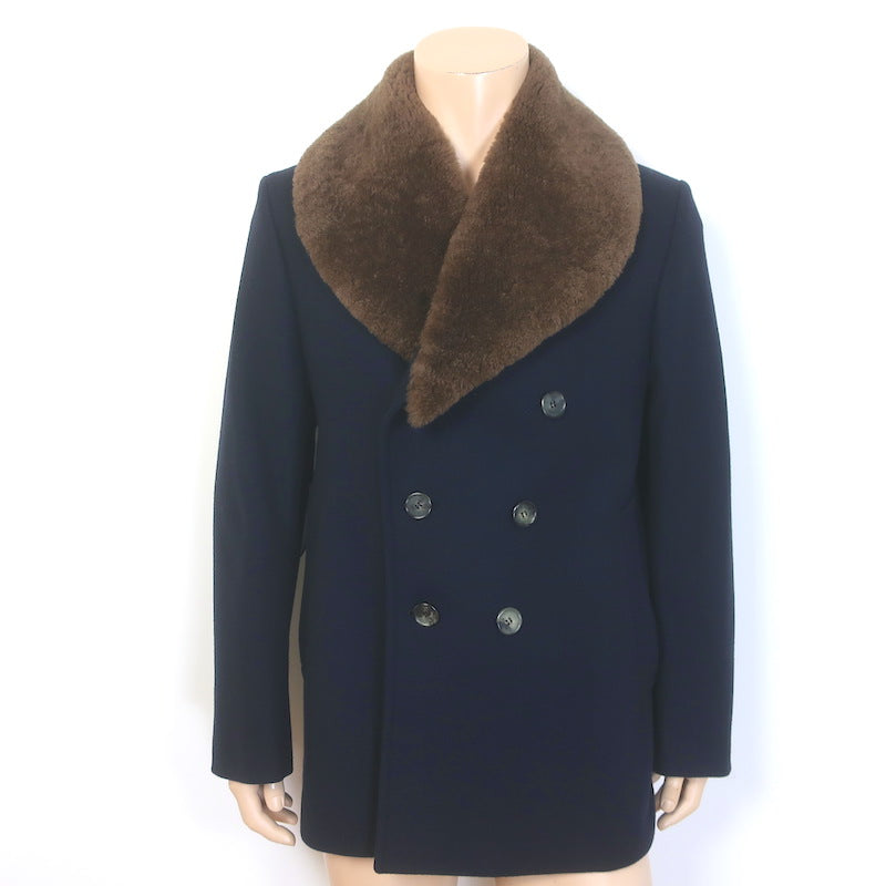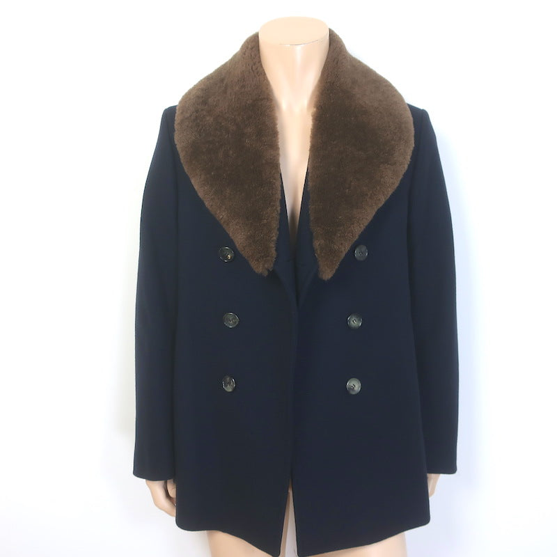 Alexander McQueen Shearling-Collar Peacoat Navy Wool-Cashmere Size 50