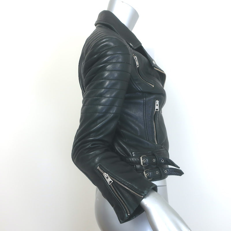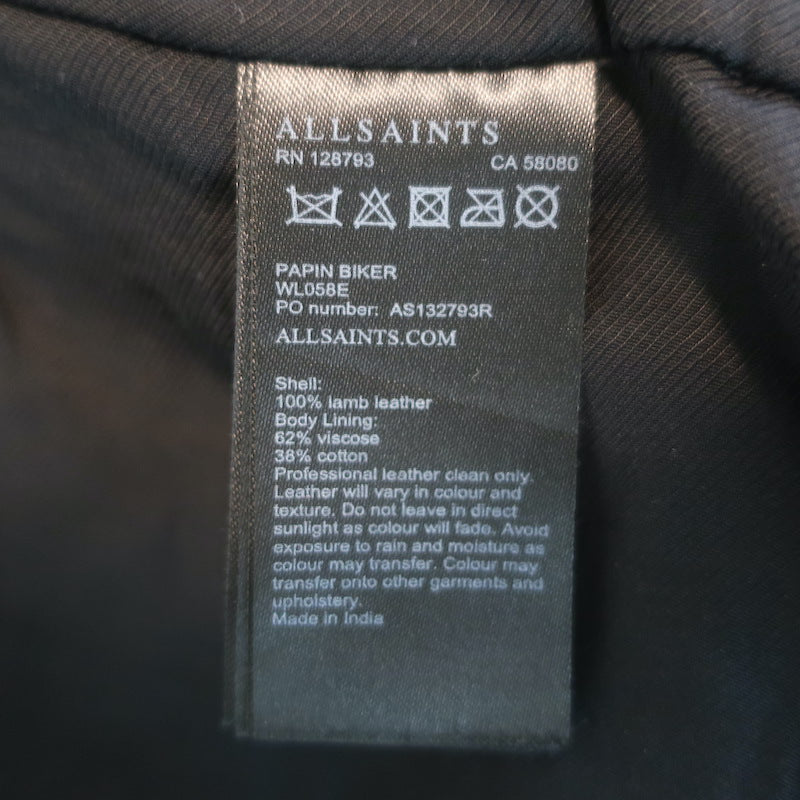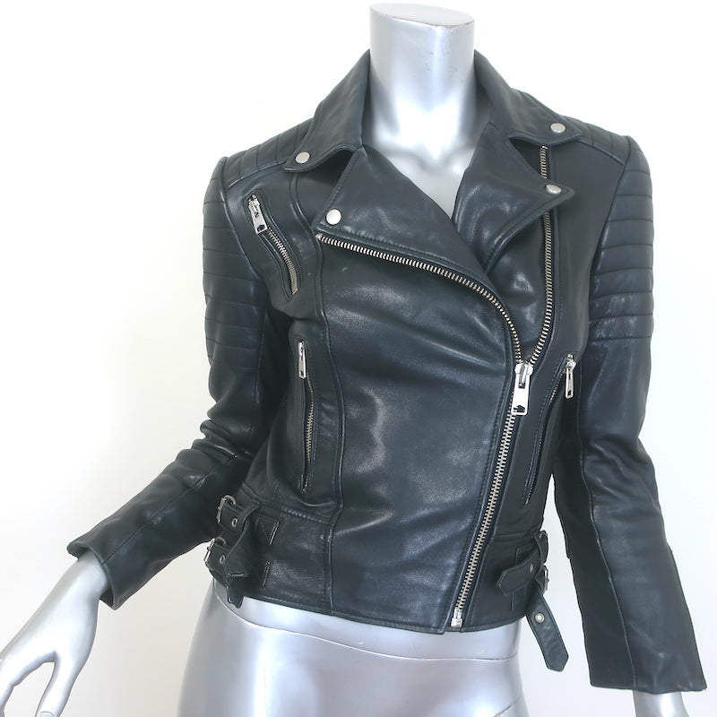 AllSaints Papin Leather Biker Jacket Black Size US 0 Measurements