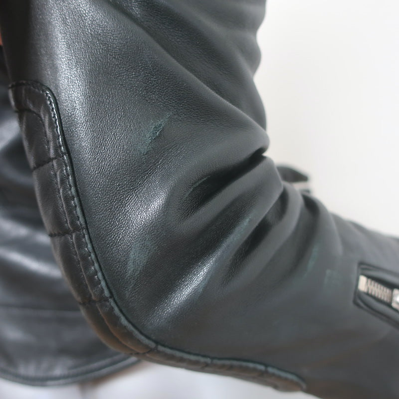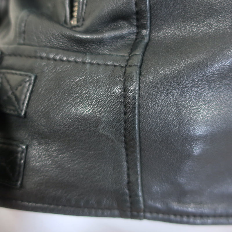 Pre-loved. Small white smudges throughout may come out with cleaning. Wear along seams, on right sleeve, on back of left elbow and on side straps. Small scratches on front panel from zipper. Retails for $585!