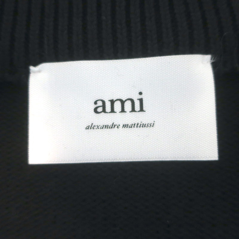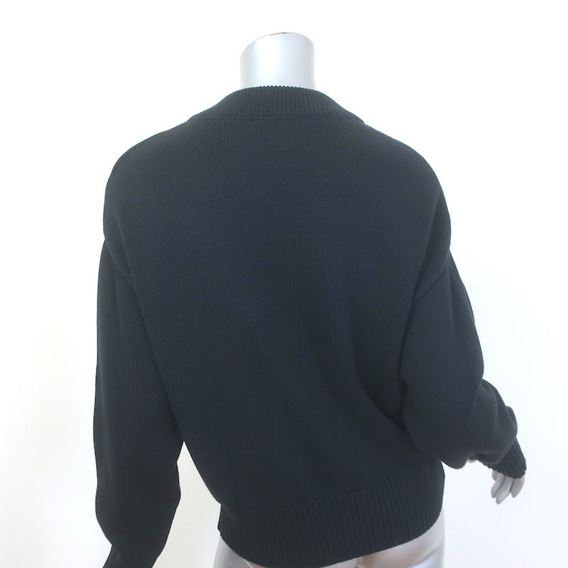 AMI Paris Ami De Coeur Embroidered Crewneck Sweater Black Wool Size Small
