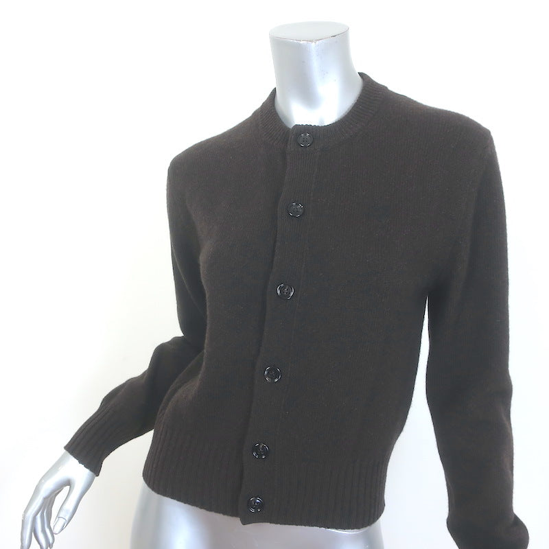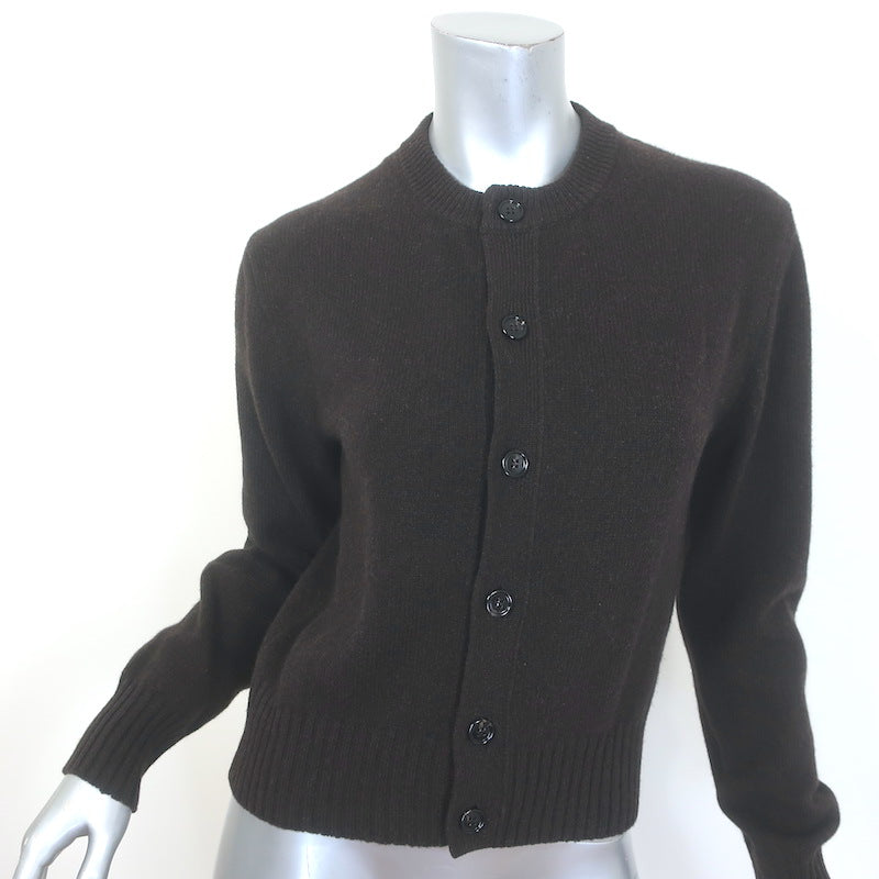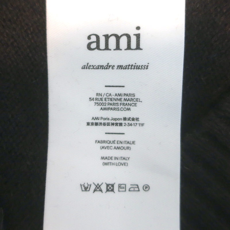 AMI Paris Ami de Coeur Embroidered Cardigan Dark Brown Cashmere-Wool Size Medium