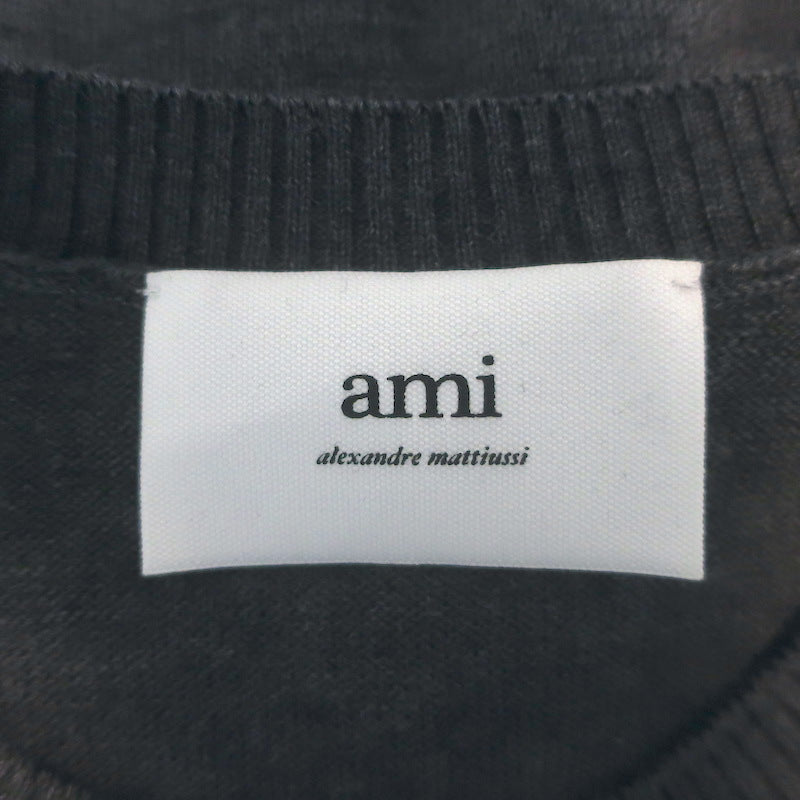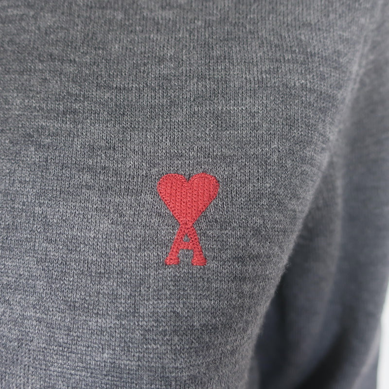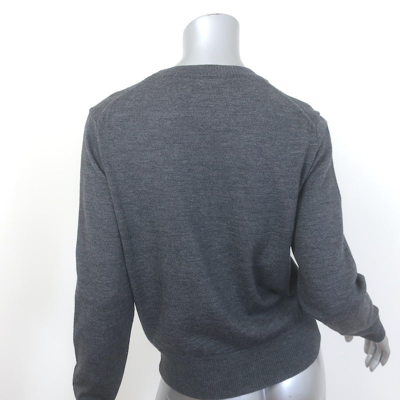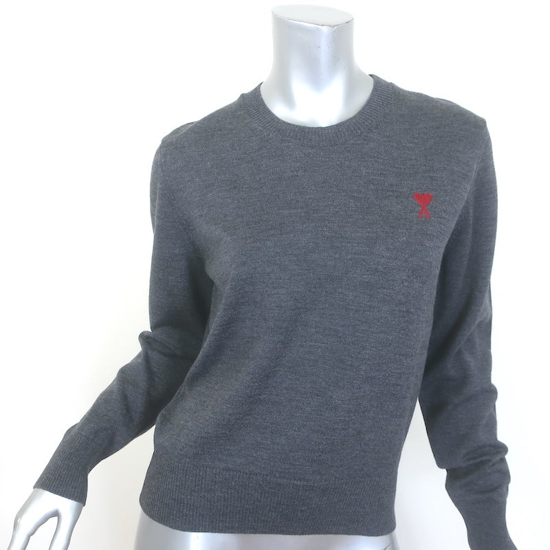 AMI Paris Ami De Coeur Embroidered Crewneck Sweater Gray Wool Size Small