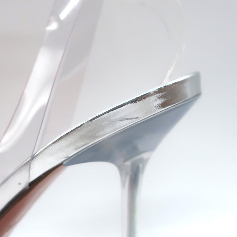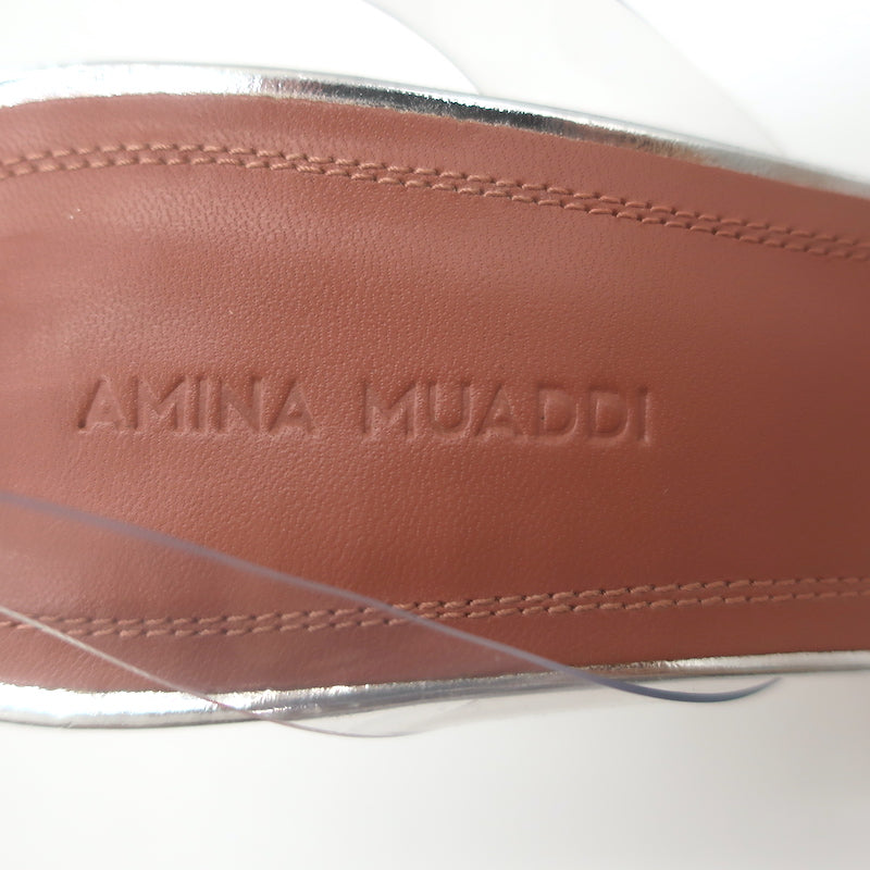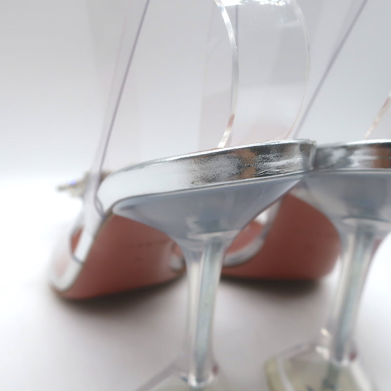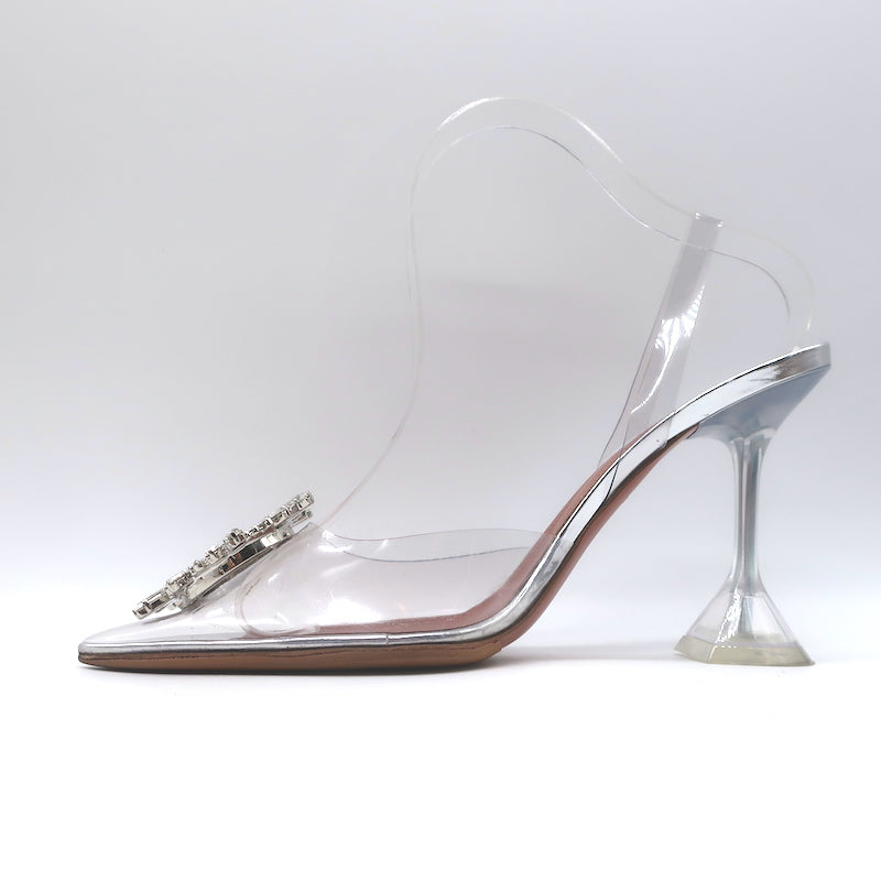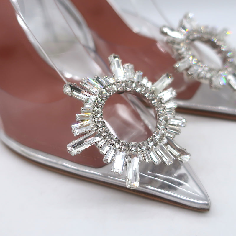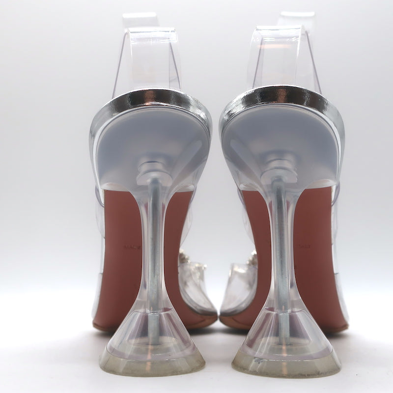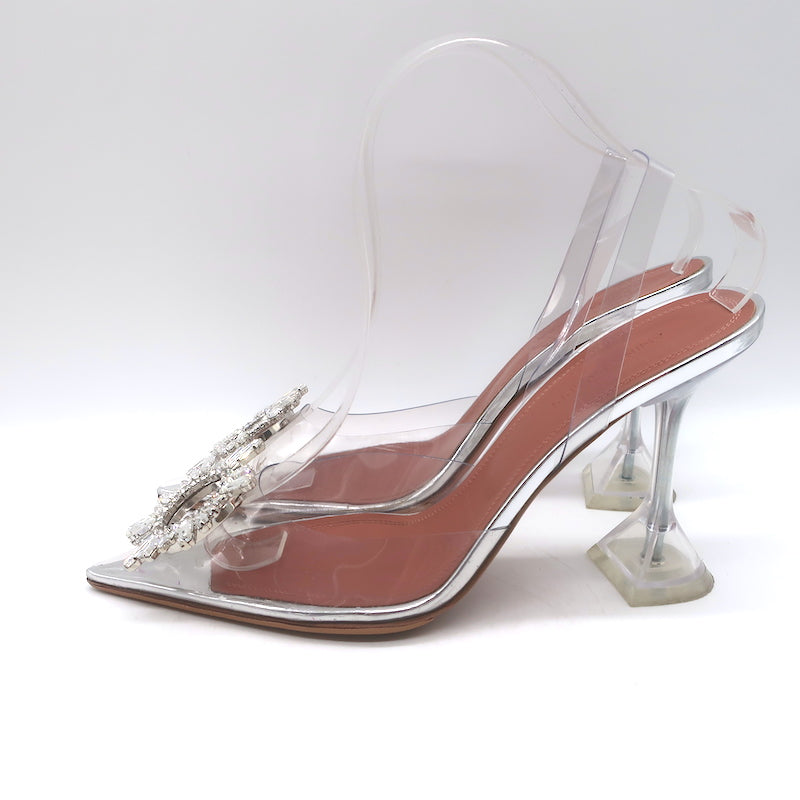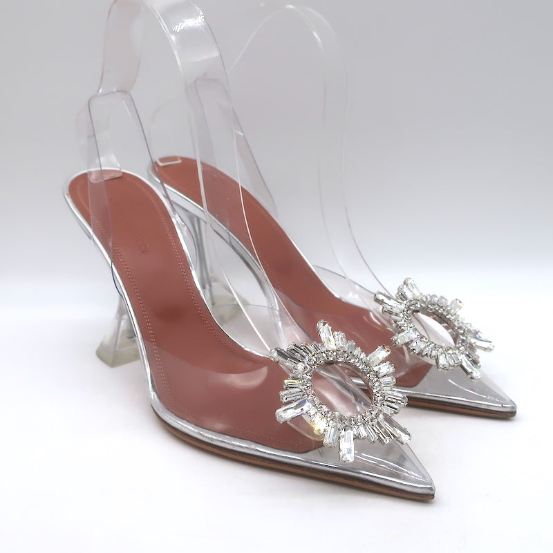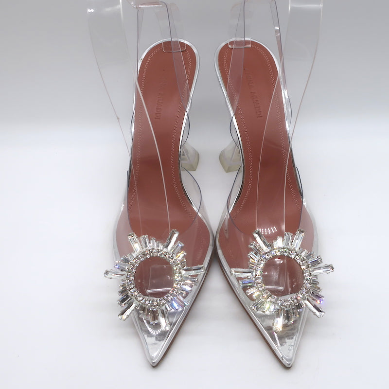 Amina Muaddi Begum Glass Crystal-Embellished Slingback Heels Silver Size 38 Measurements