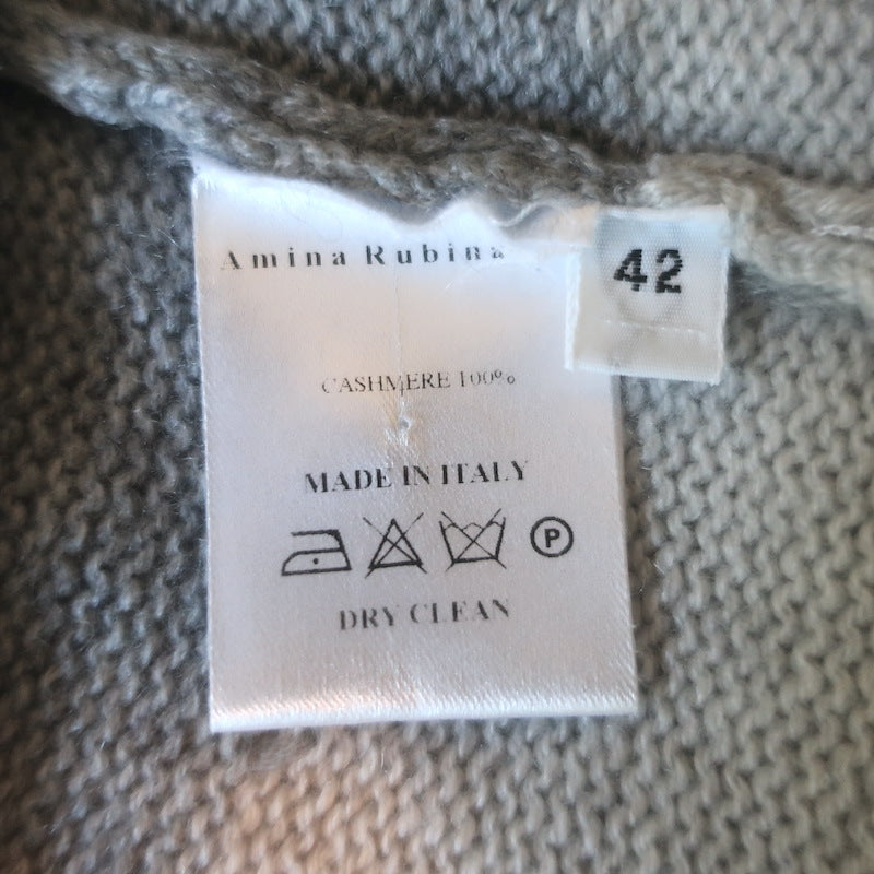 Amina Rubinacci Cashmere Intarsia Knit Turtleneck Sweater Gray Size 42
