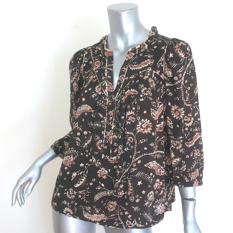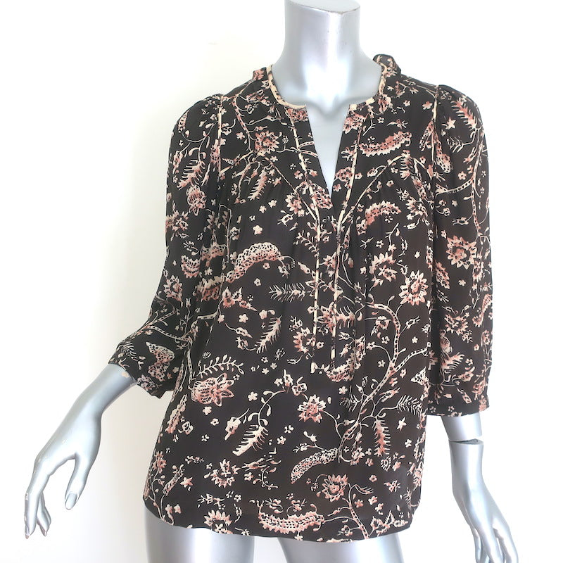 Ba&sh Caia Half-Button Blouse Carbone Floral Print Size Small 3/4 Sleeve Top