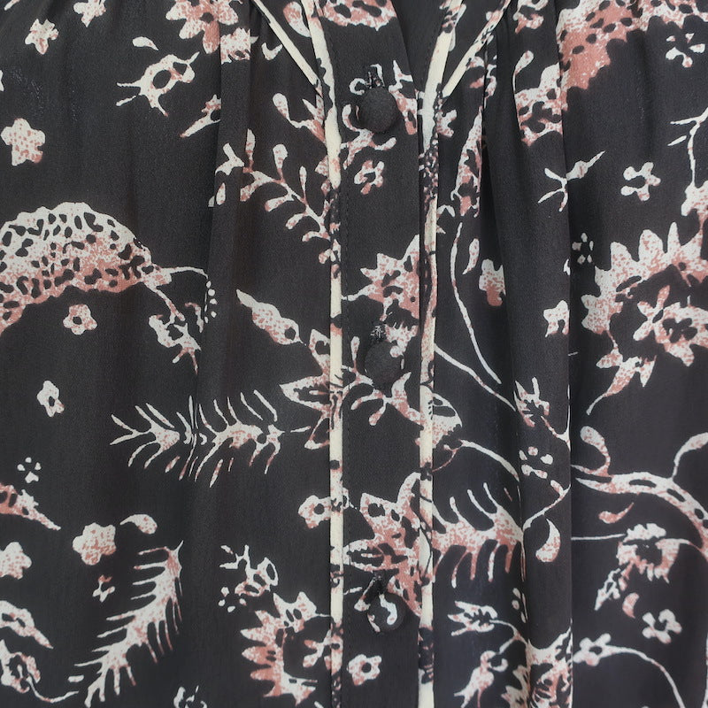 Ulla Johnson Belen Blouson-Sleeve Top Black/Brown Printed Silk Chiffon...