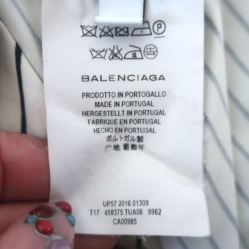 Balenciaga Cutout-Sleeve Striped Turtleneck Top White/Black Jersey Size 36