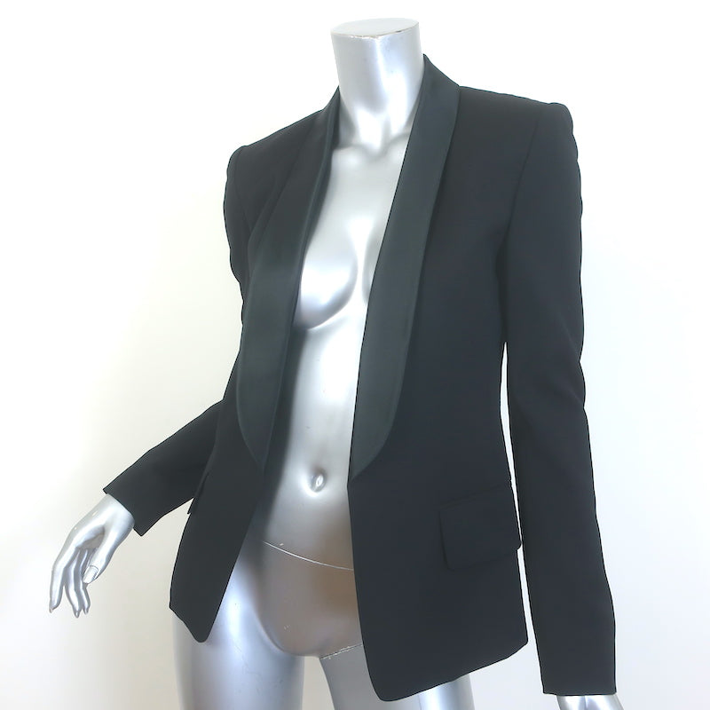 Balmain Satin-Lapel Tuxedo Jacket Black Wool Size 38 Open-Front Jacket