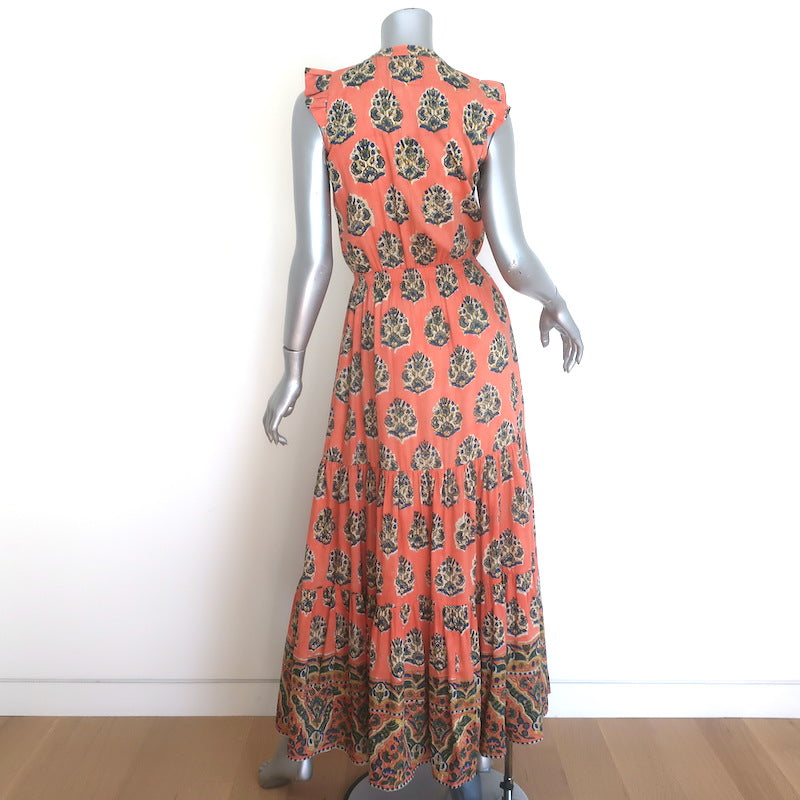 Hemant & Nandita Noor Maxi Dress Blush Metallic Printed Chiffon Size E...