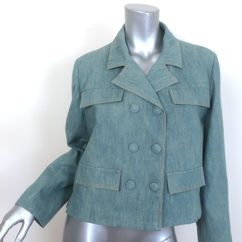 Bottega Veneta Double Breasted Chambray Denim Jacket Light Blue Size 46