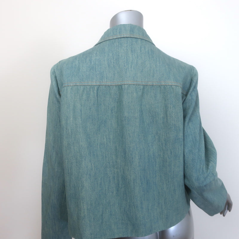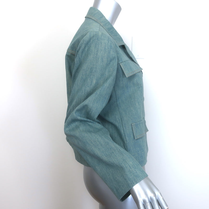 Cinq a Sept Khloe Denim Blazer Aqua Stretch Cotton Size 00 One-Button ...