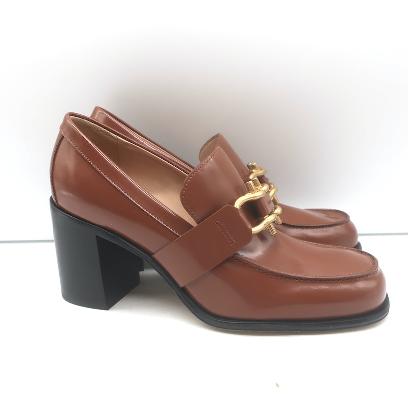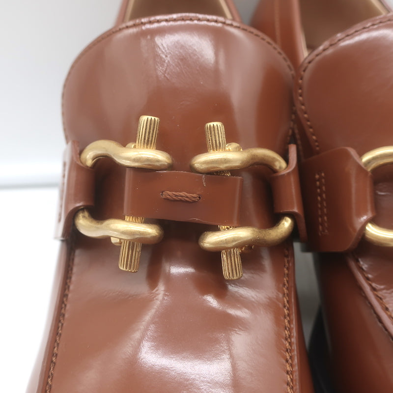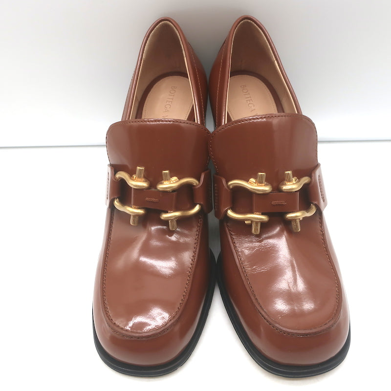 Bottega Veneta Monsieur Bit Loafer Pumps Brown Polished Leather Size 38.5