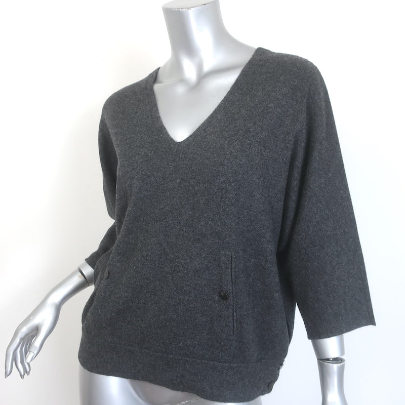 Brunello Cucinelli Cashmere Front-Pocket V-Neck Sweater Charcoal Size Small