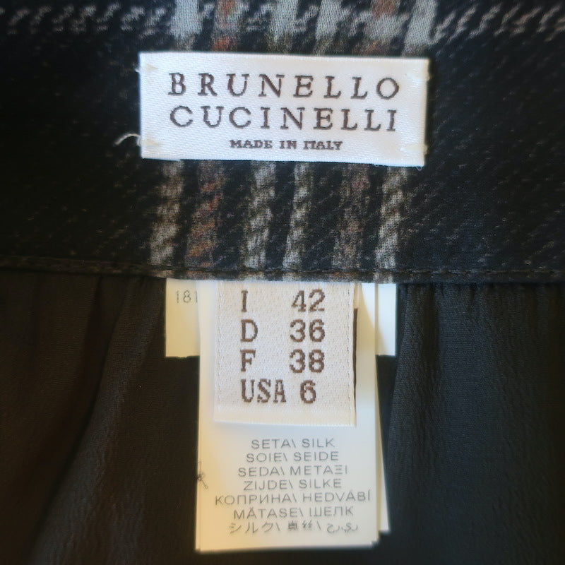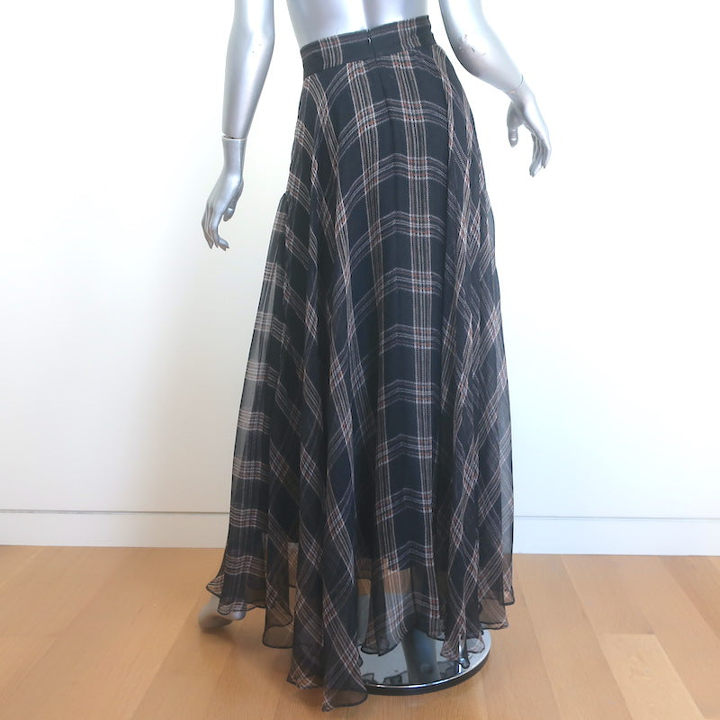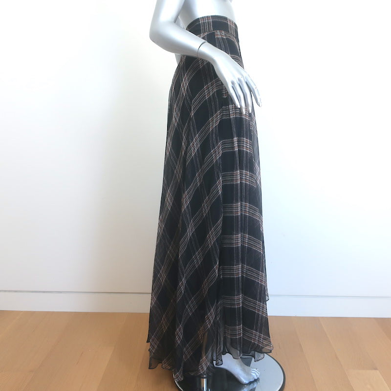 Brunello Cucinelli Checked Silk Chiffon Maxi Skirt Charcoal/Beige Size US 6