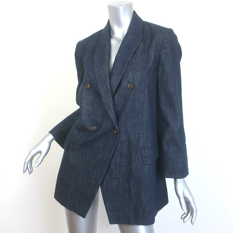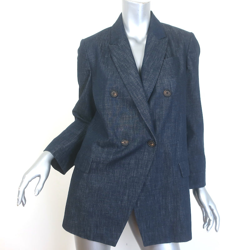 Brunello Cucinelli Double Breasted Denim Blazer Indigo Size 44