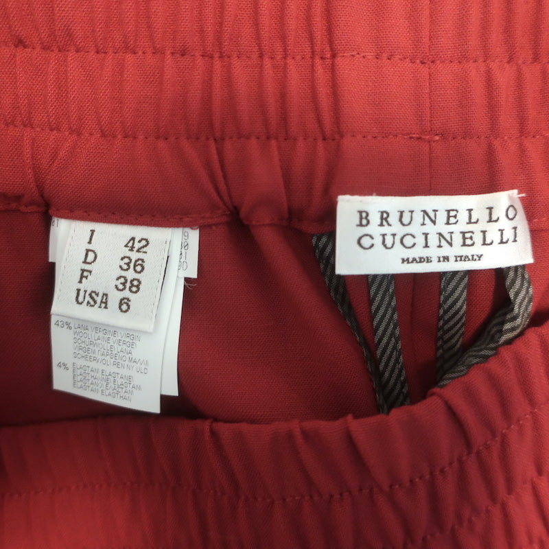 Brunello Cucinelli Elastic-Waist Cropped Tapered Pants Red Stretch Wool Size 42