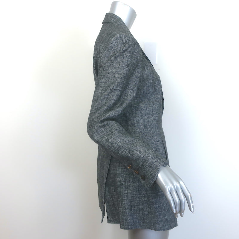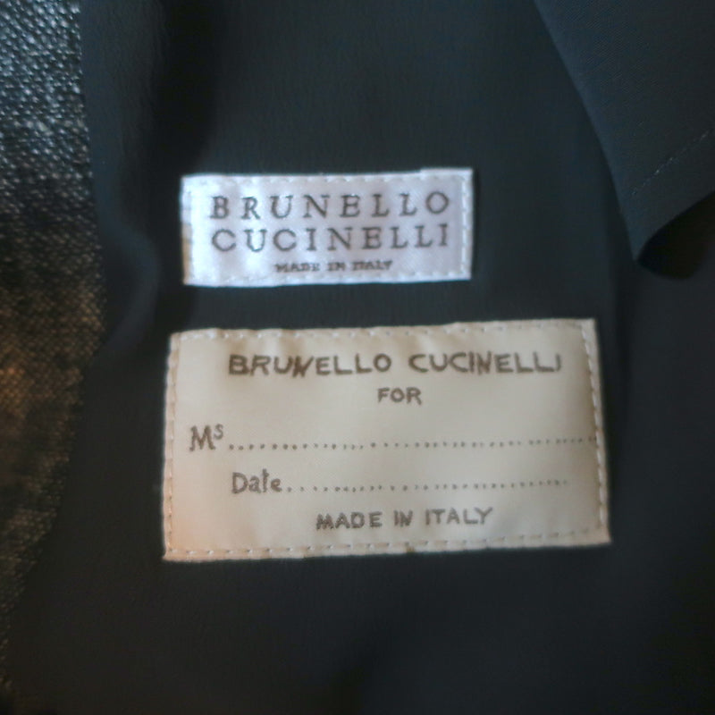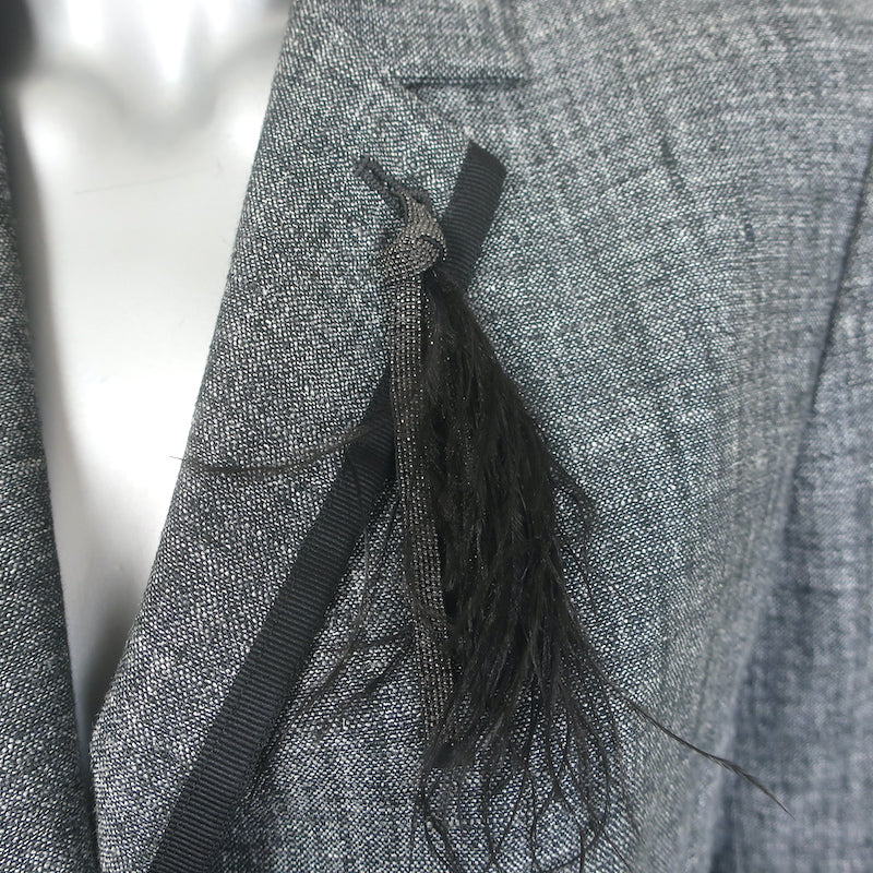 Brunello Cucinelli Monili Beaded Feather Brooch Blazer Gray Linen-Blend Size 44