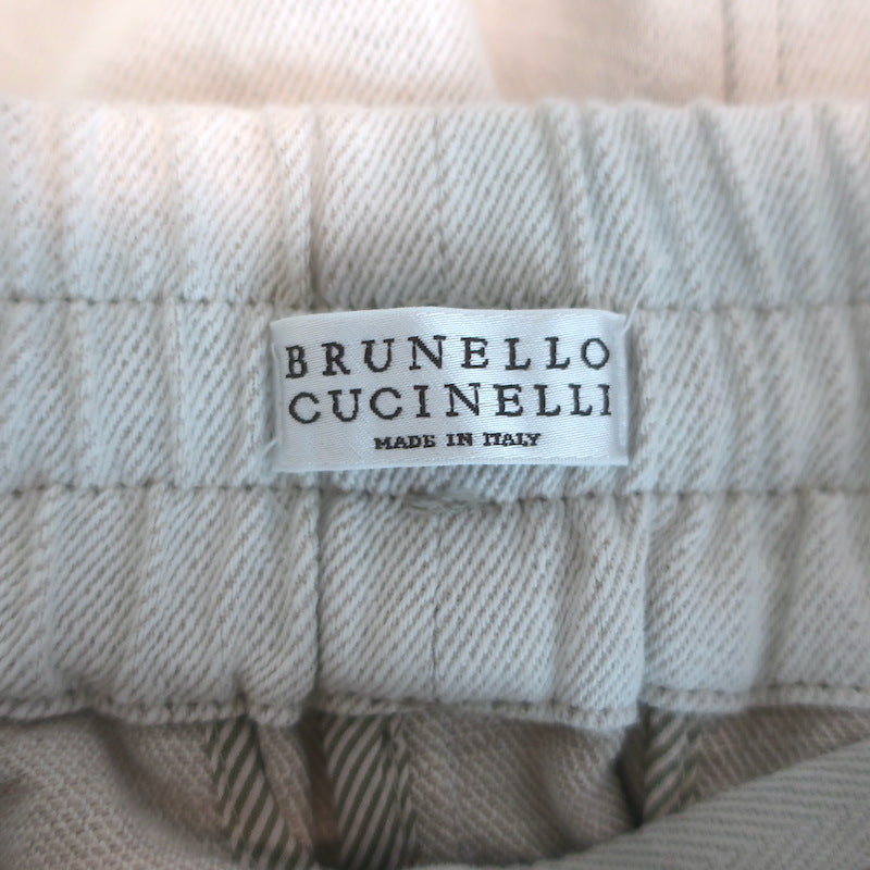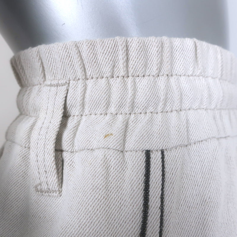 Brunello Cucinelli Monili Side-Stripe Cropped Pants Ecru Cotton-Linen Size US 4