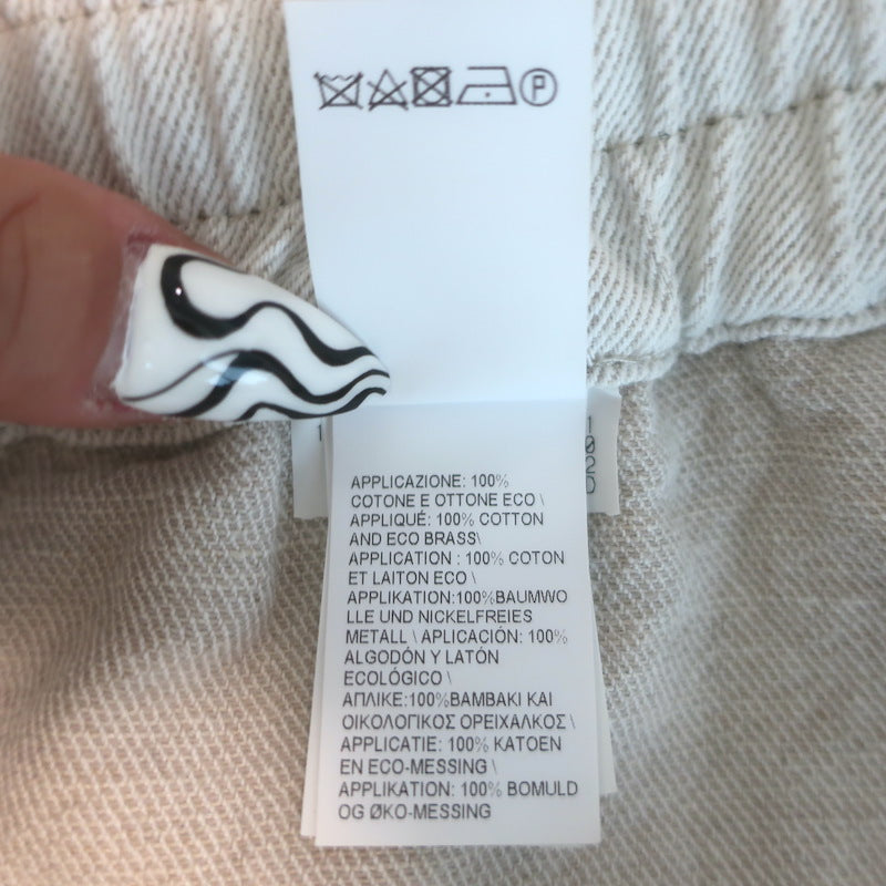 Pre-loved. Good condition. Yellow smudge on front left hip may come out with cleaning. Snap and button closures on left hip. Retails...