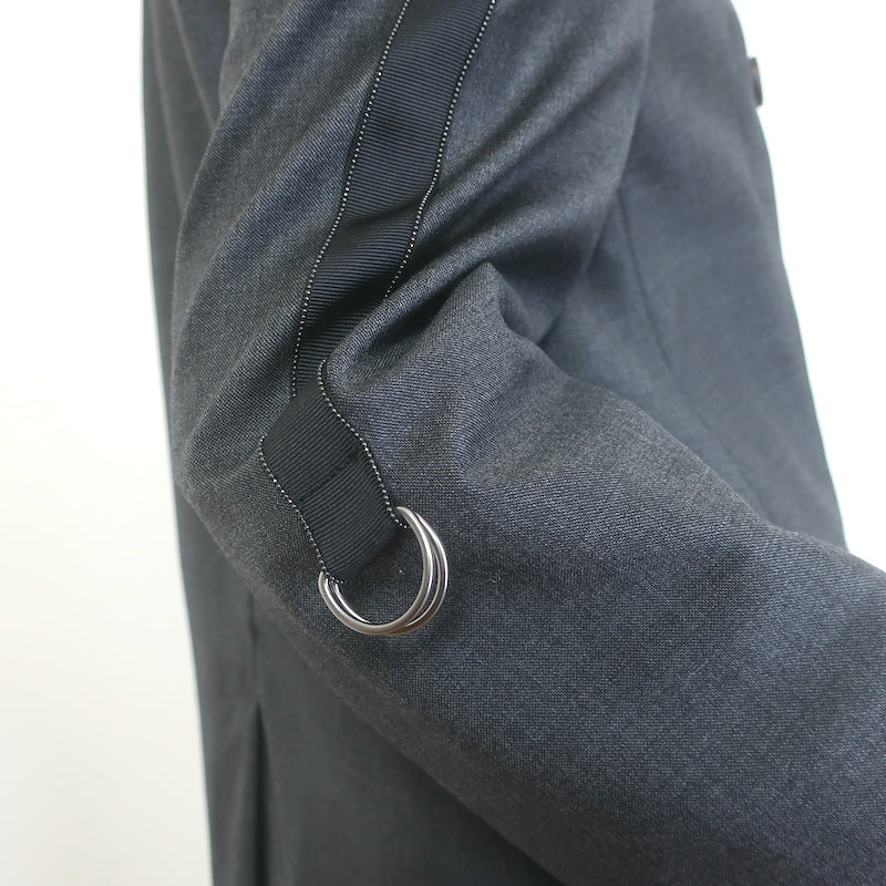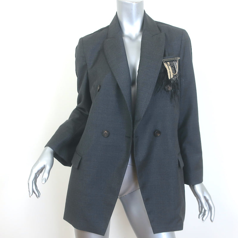Brunello Cucinelli Monili-Trim Blazer with Feather Brooch Charcoal Wool Size 42