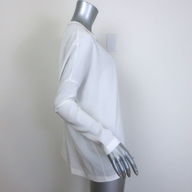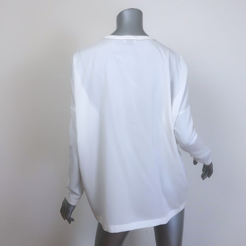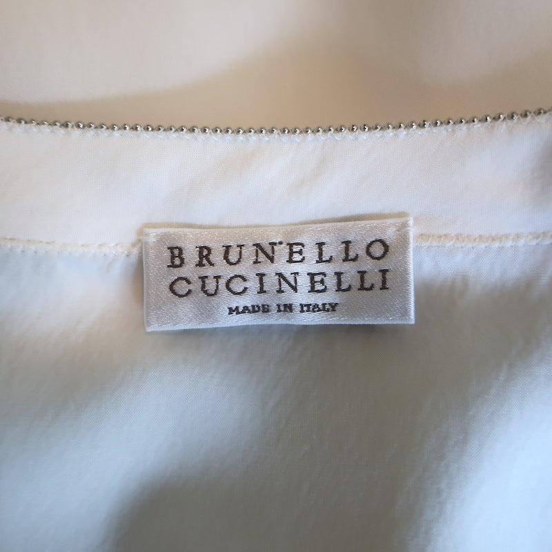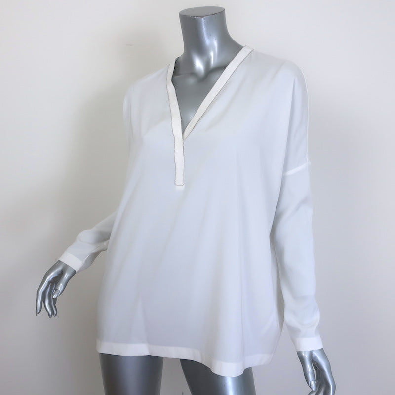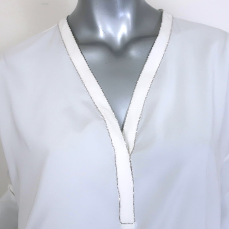 Brunello Cucinelli Monili-Trim Popover Blouse Cream Stretch Silk Size Small