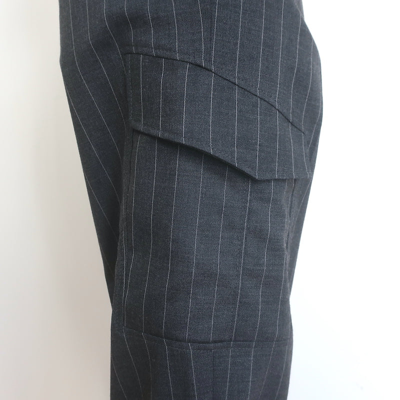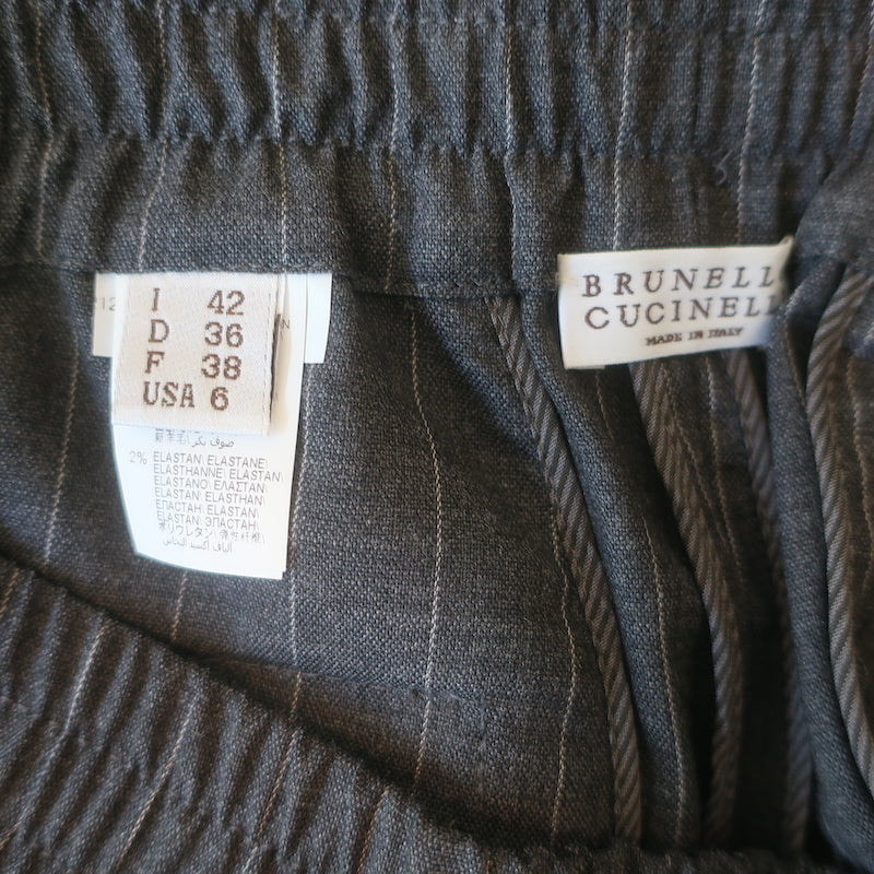 Brunello Cucinelli Pinstripe Cargo Pants Gray Stretch Wool Size US 6