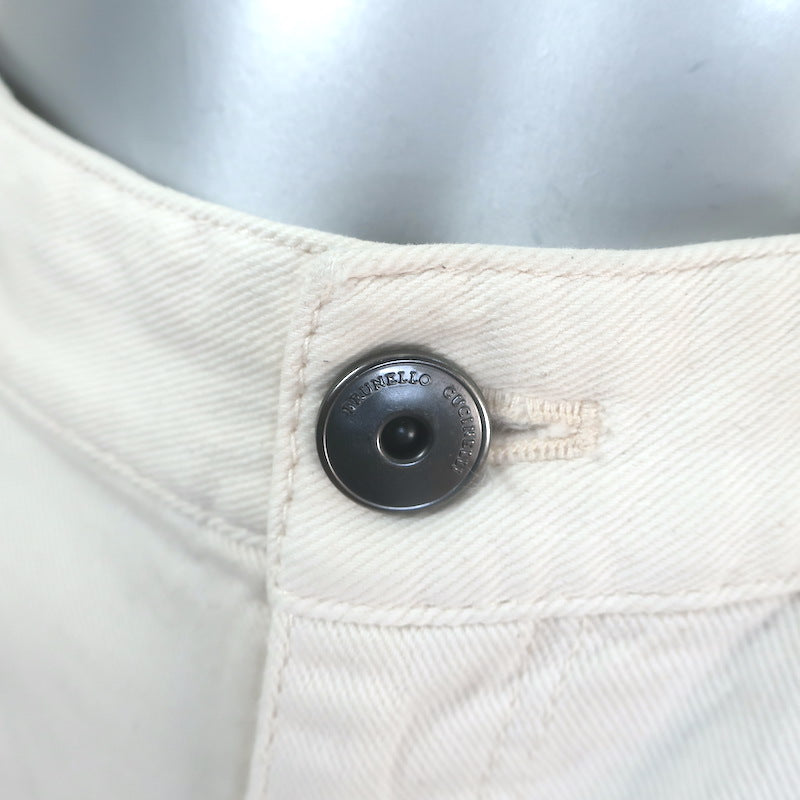 Brunello Cucinelli Monili Tab Belt Ankle Pants Ecru Stretch Cotton Siz...