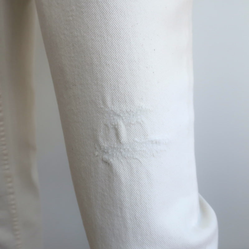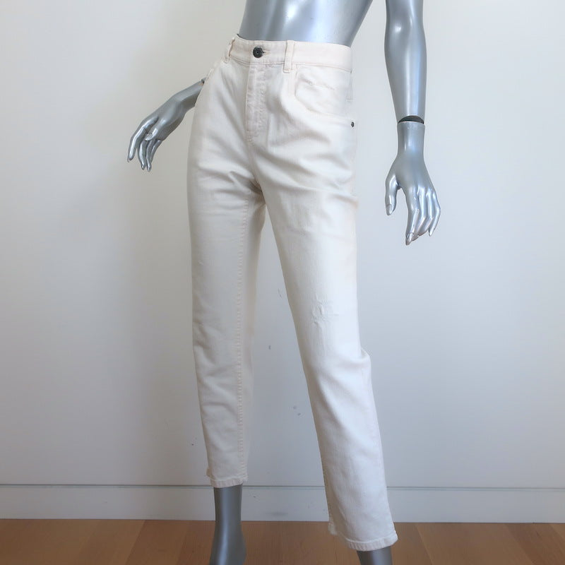 Brunello Cucinelli Relaxed Low Slung Jeans Ecru Distressed Denim Size US 6
