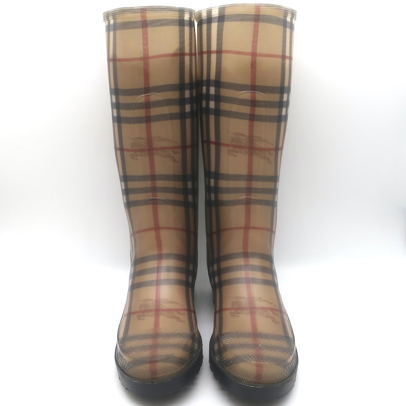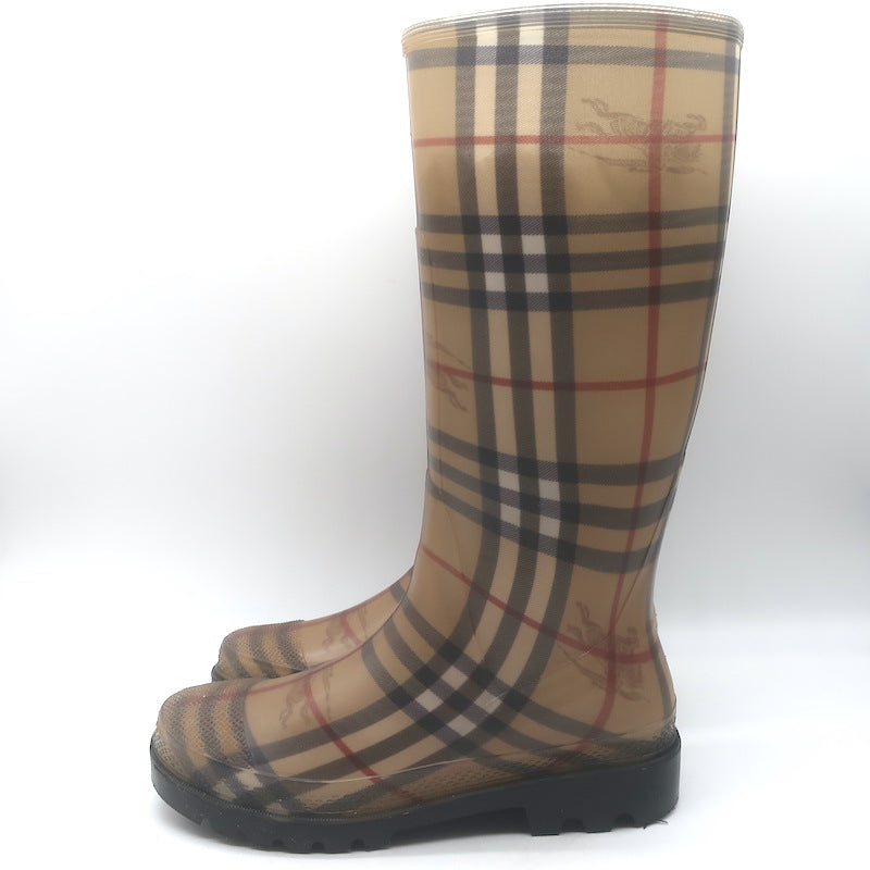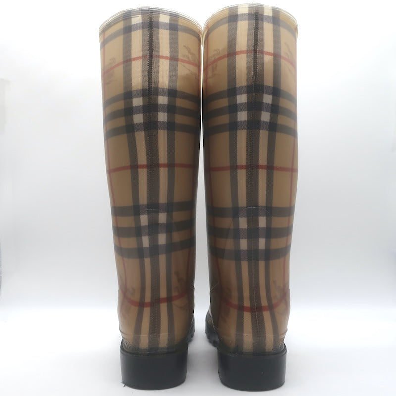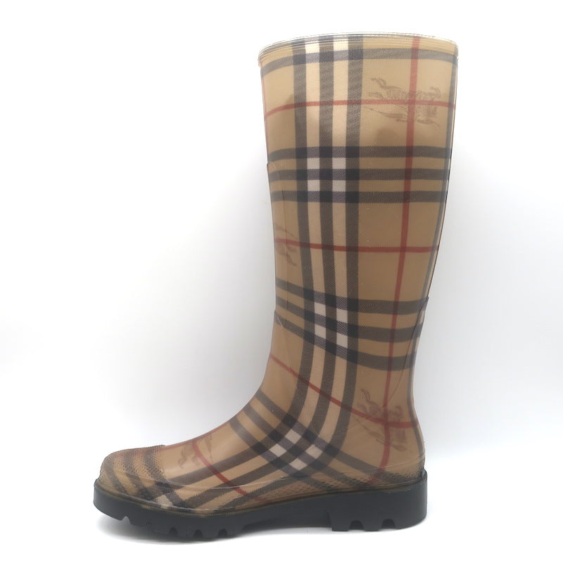 Burberry Haymarket Check Rain Boots Beige Rubber Size 38